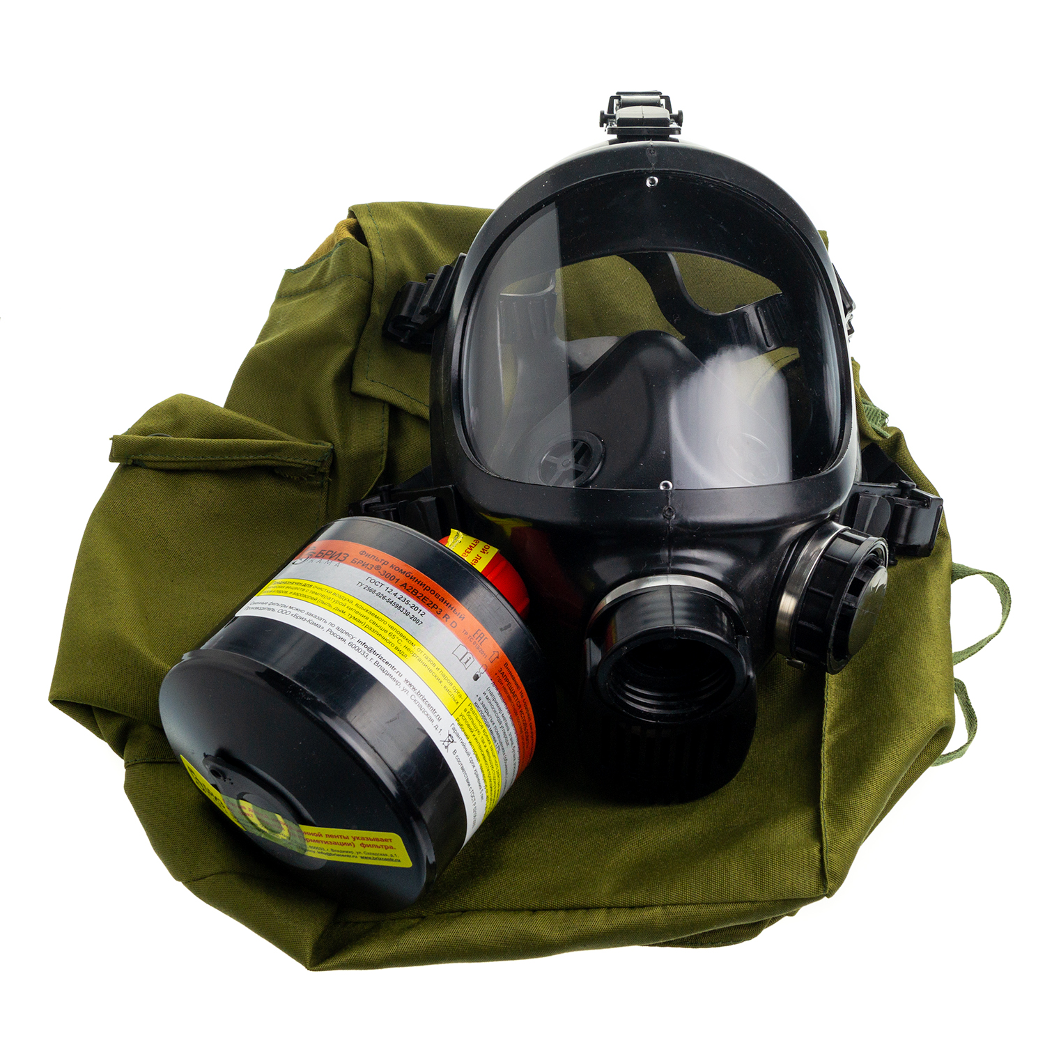 Противогаз фильтрующий «Бриз-3301 (ППФ)» марки A2B2E2P3 R D с лицевой частью Бриз-4301М (ППМ) категория 2 обеспечивает защиту органов дыхания, глаз и кожи лица от: