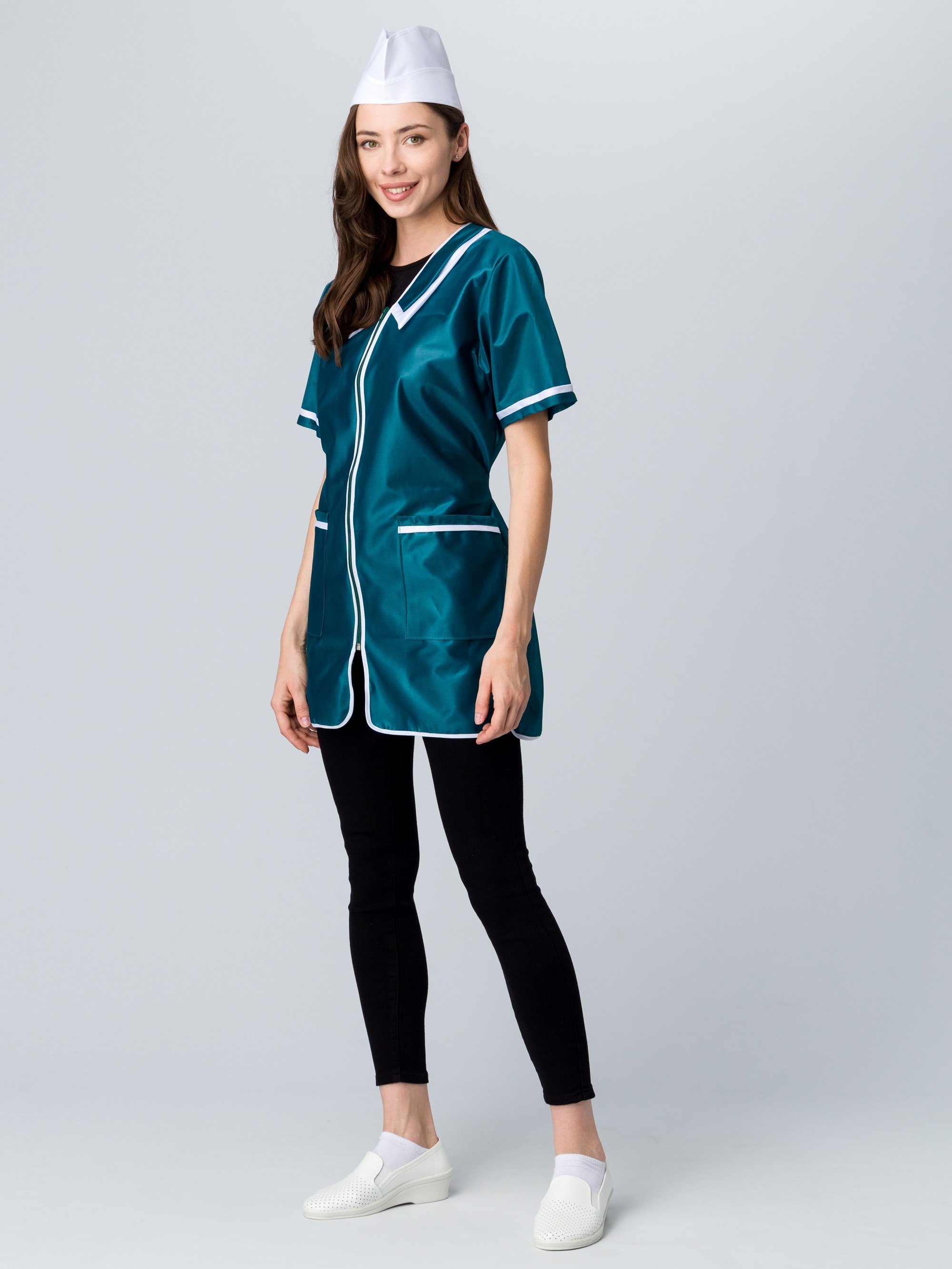 Халат женский на молнии короткий рукав (тк.Нейлон), зеленый