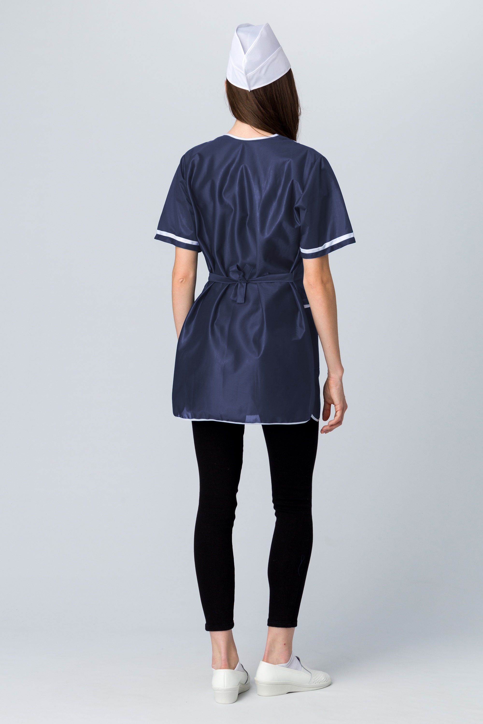 Халат женский на молнии короткий рукав (тк.Нейлон), синий