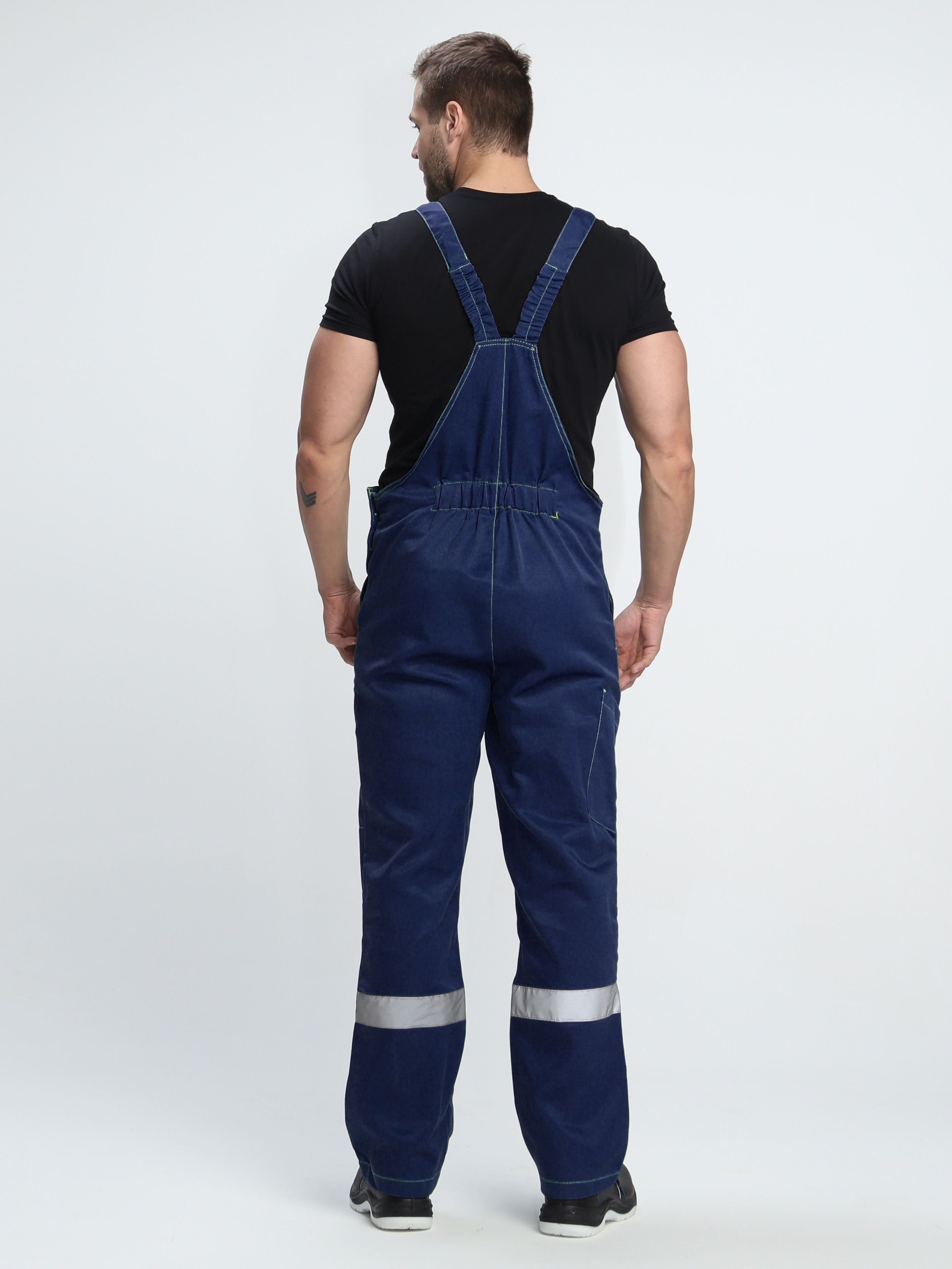 • Рабочий полукомбинезон прямого кроя оснащен бретелями с регулировкой по длине и нагрудным карманом, закрывающимся на липучку