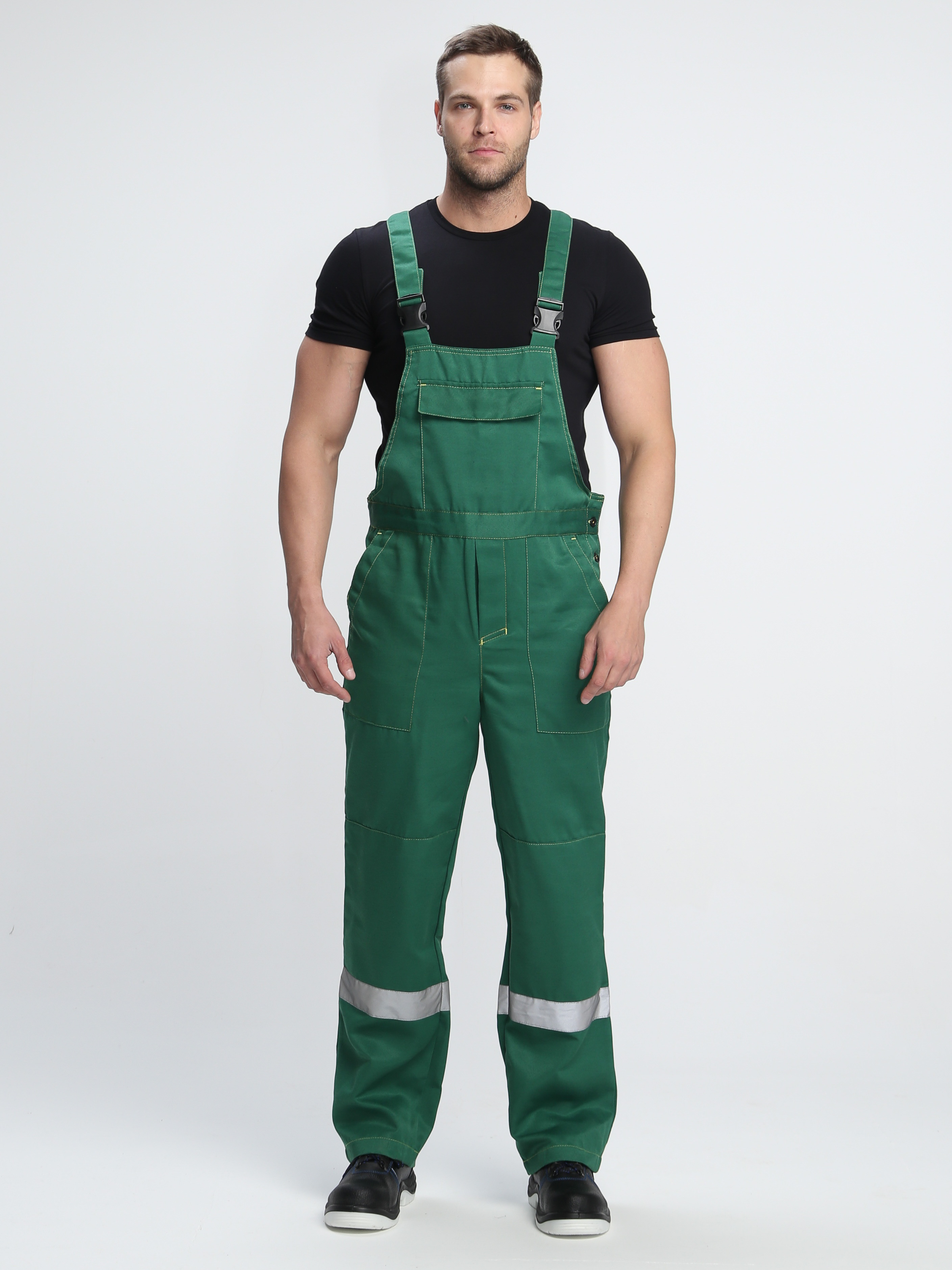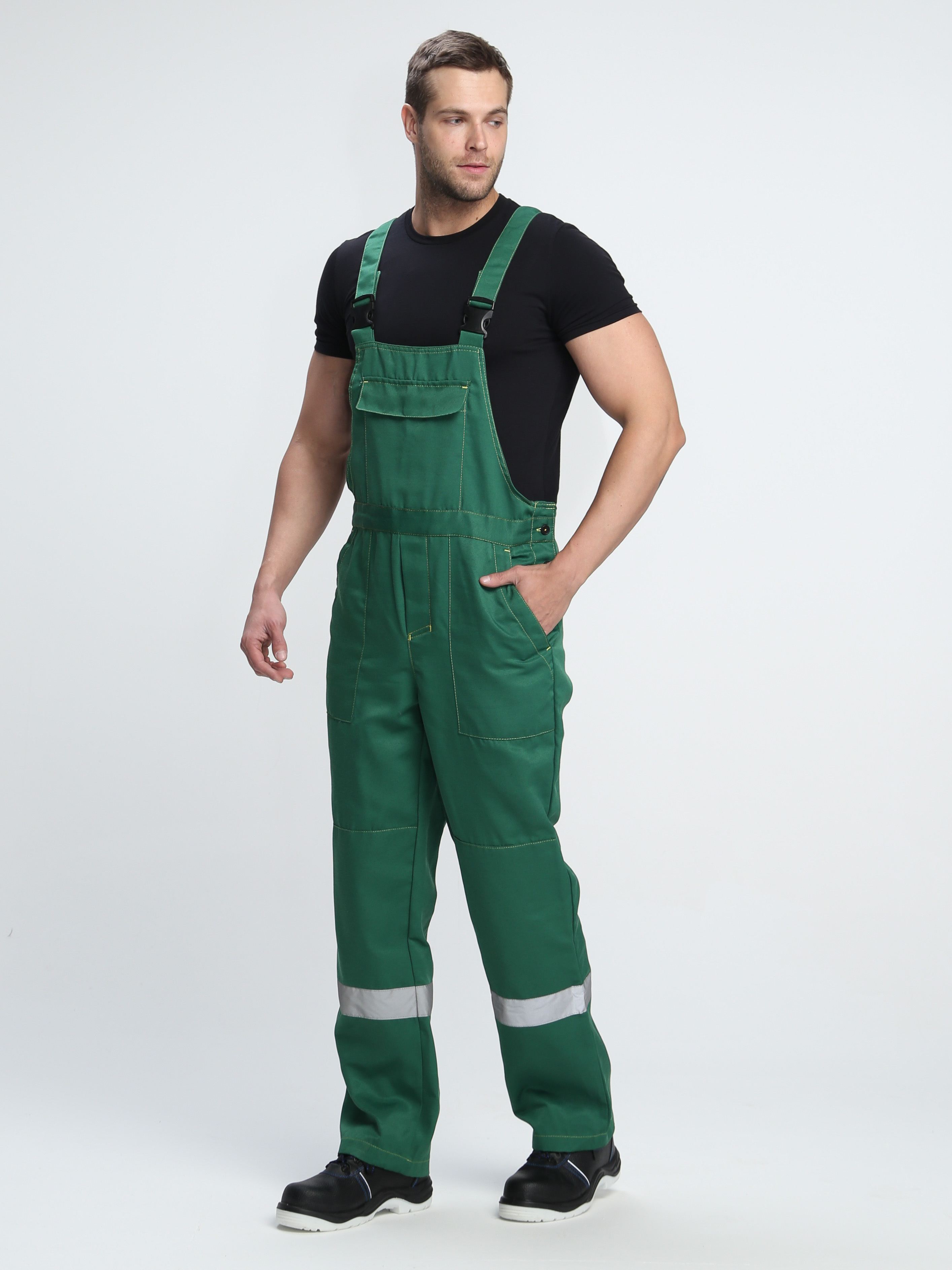• Рабочий полукомбинезон прямого кроя оснащен бретелями с регулировкой по длине и нагрудным карманом, закрывающимся на липучку