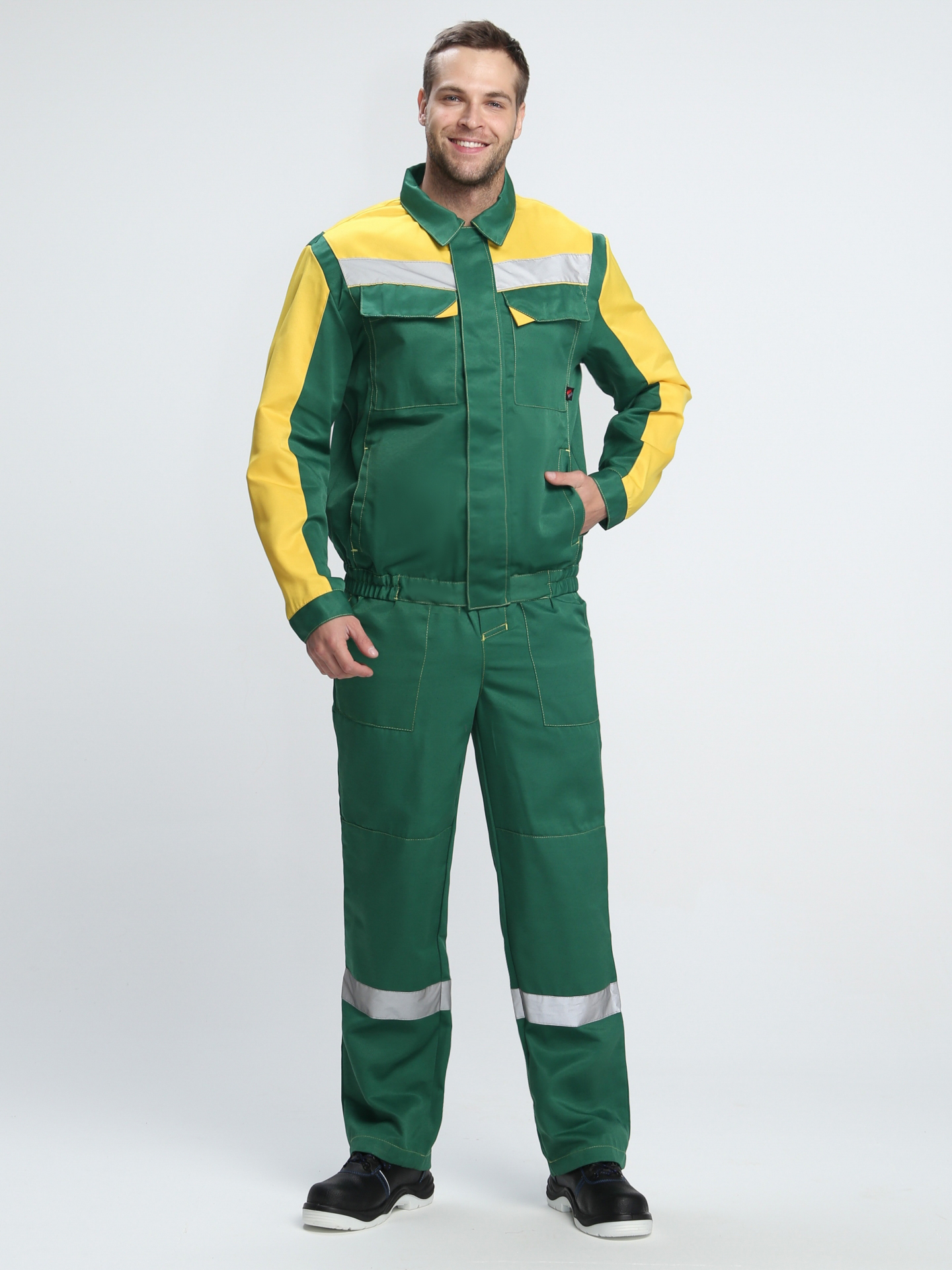• Благодаря качественным материалам, усилению на коленях и локтях рабочий костюм отличается повышенной износостойкостью и долго сохраняет внешний вид