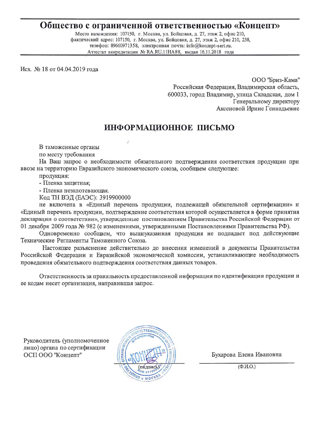 | Код ТН ВЭД: | 3919900000 |