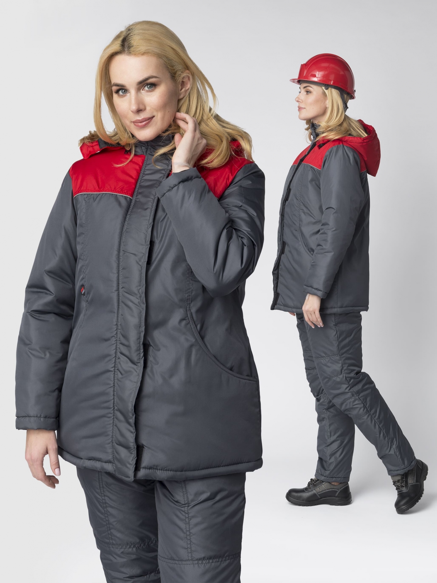 Куртка зимняя женская Сакрин (Дюспо), темно-серый/красный