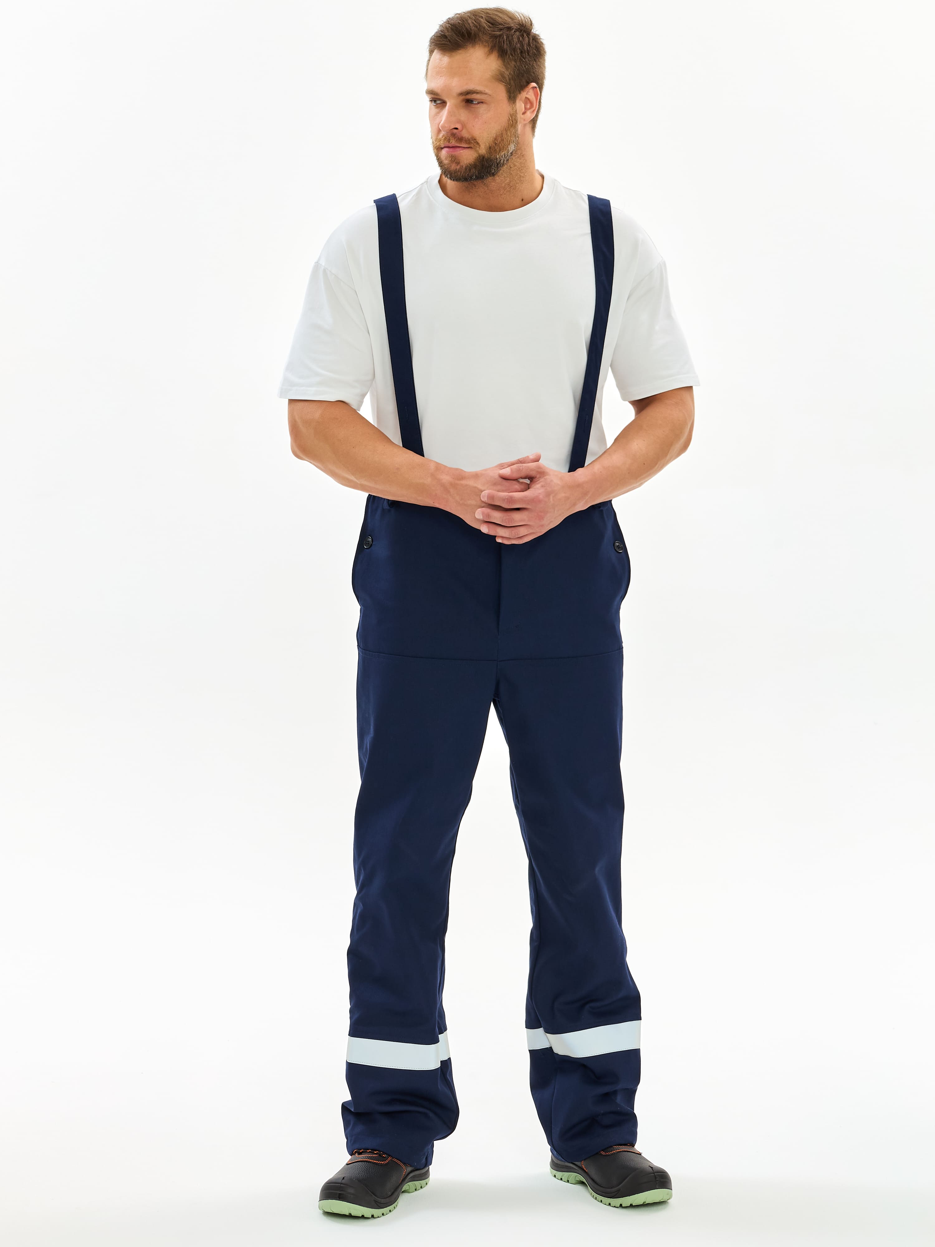 - к брюкам прилагаются съемные бретели и дополнительно ремень для регулировки брюк по ширине талии