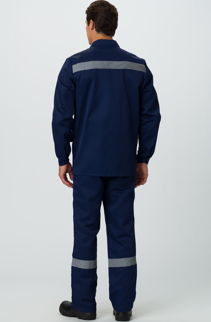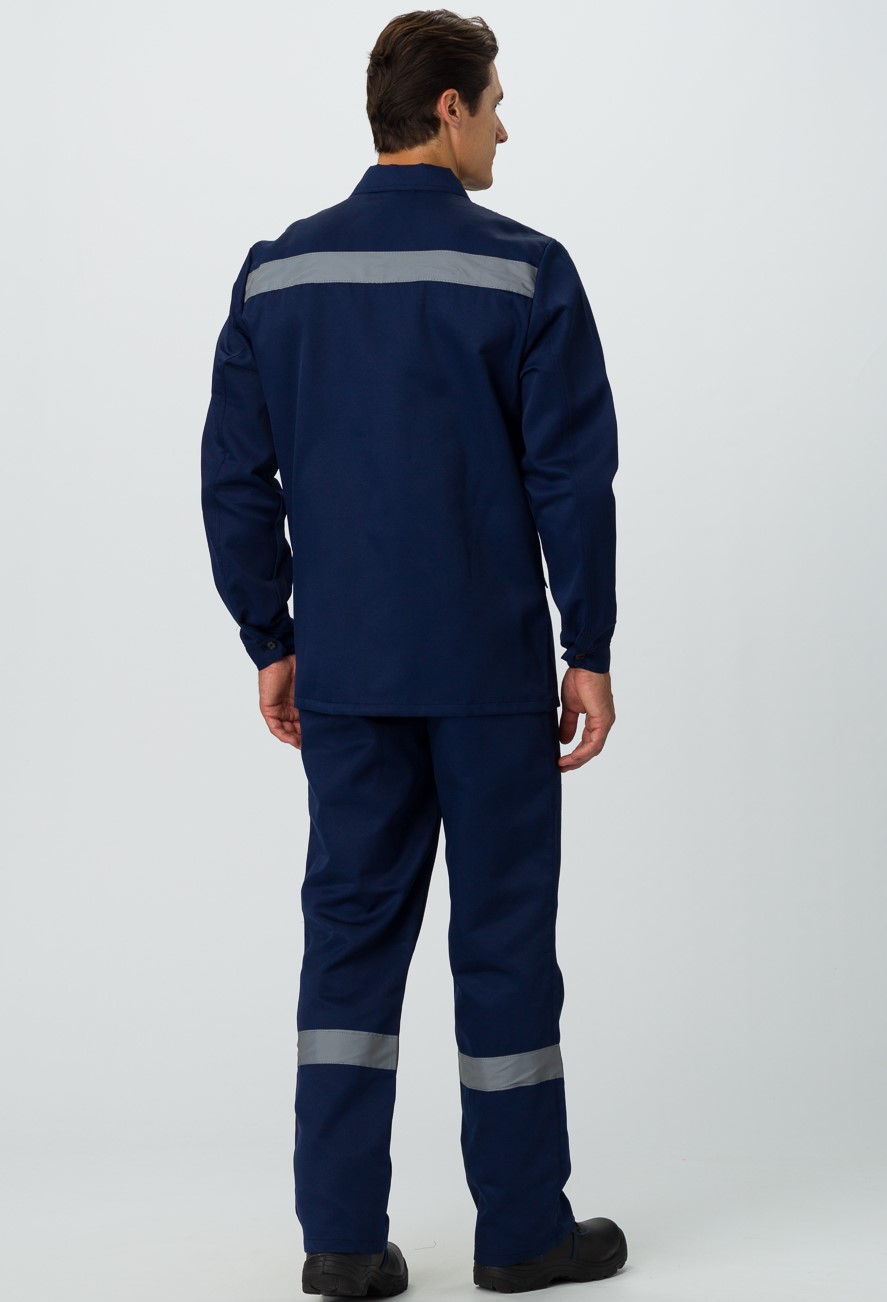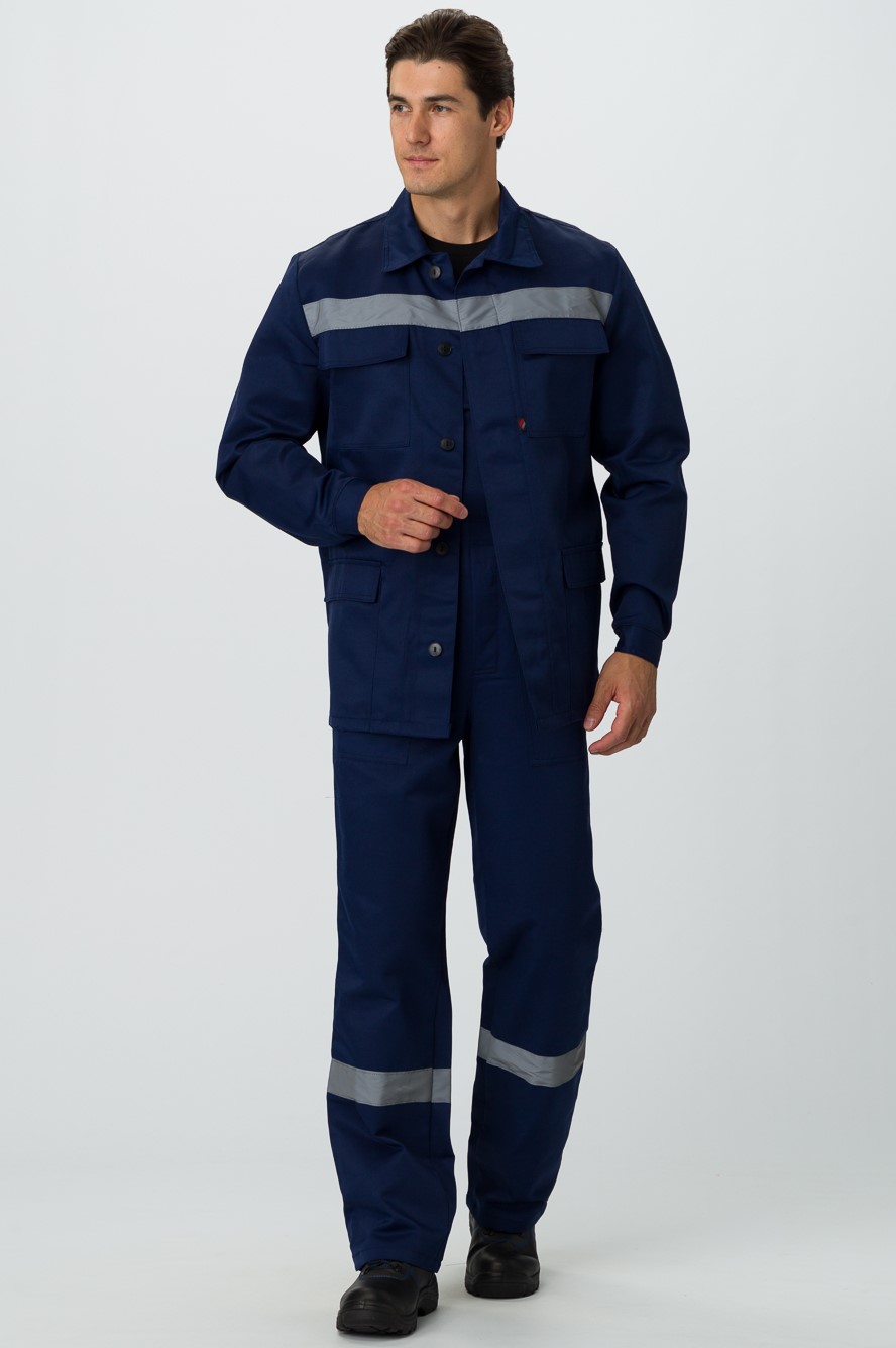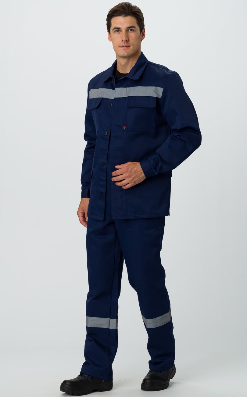 Рабочий костюм мужской «Экспертный-Люкс СОП», изготовленный в соответствии с ГОСТ, включает в себя два предмета: рабочая мужская куртка и полукомбинезон рабочий. Спецодежда оснащена широкими светоотражающими полосами 50 мм для безопасной работы в местах с плохим освещением. За счет удлиненной конструкции куртка защищает от переохлаждения поясничный отдел. В нижних и нагрудных карманах предусмотрены клапаны на липучке, препятствующие потере важных расходников и записей. Куртка застегивается на пуговицы, удобна и практична. Рабочий полукомбинезон прямого кроя подходит мужчинам разной комплекции, т.к. оснащен бретелями с регулировкой по длине, поясом на резинке и может дополняться широким ремнем. На груди полукомбинезона располагается закрывающийся на липучку карман, гульфик застегивается на пуговицы. Униформа дополняется изнаночной этикеткой для указания ФИО.