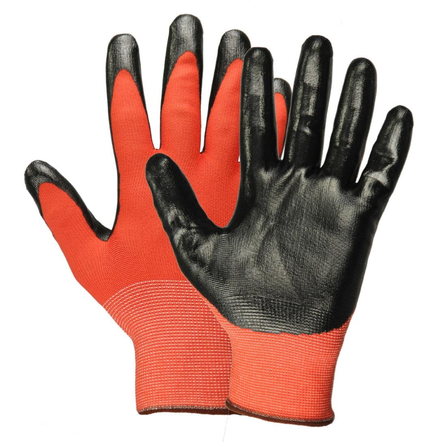 Перчатки нейлоновые с нитриловым покрытием, красно-черные