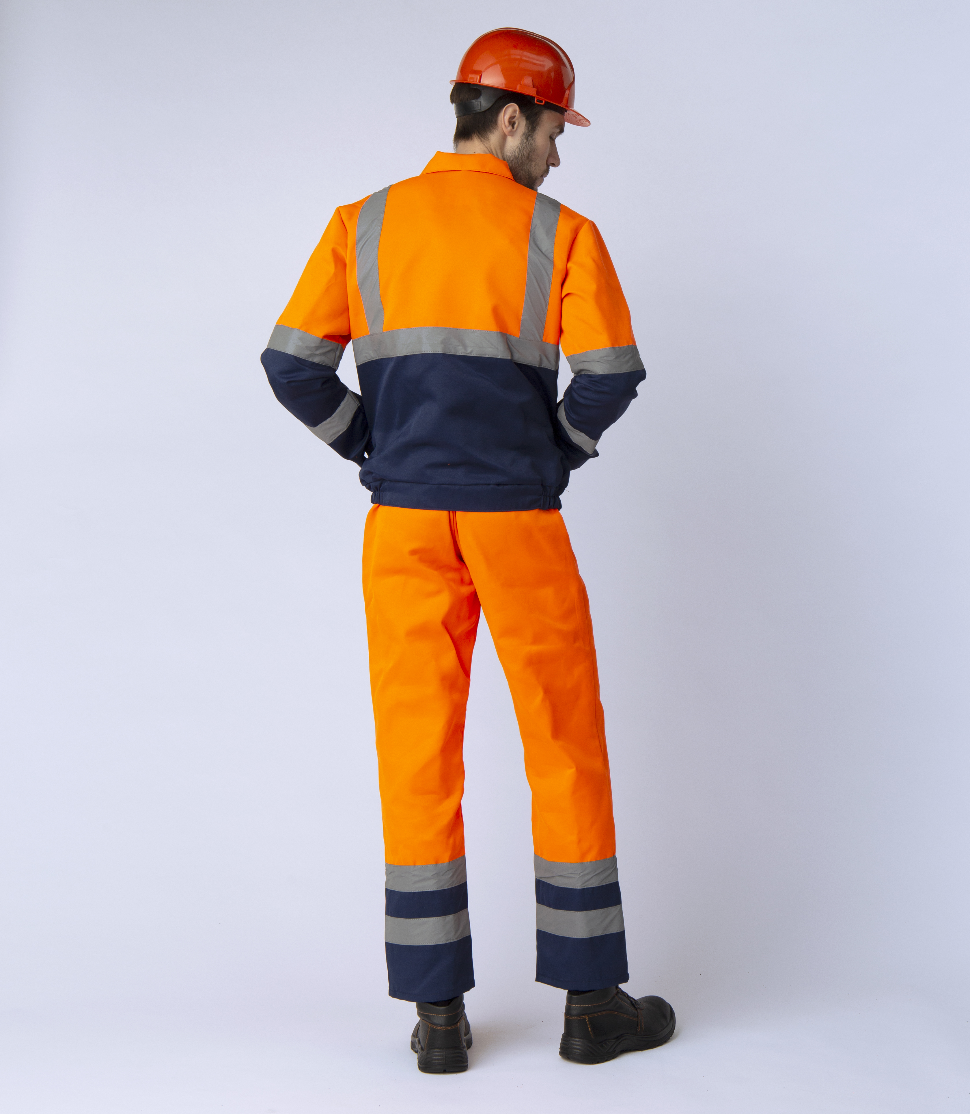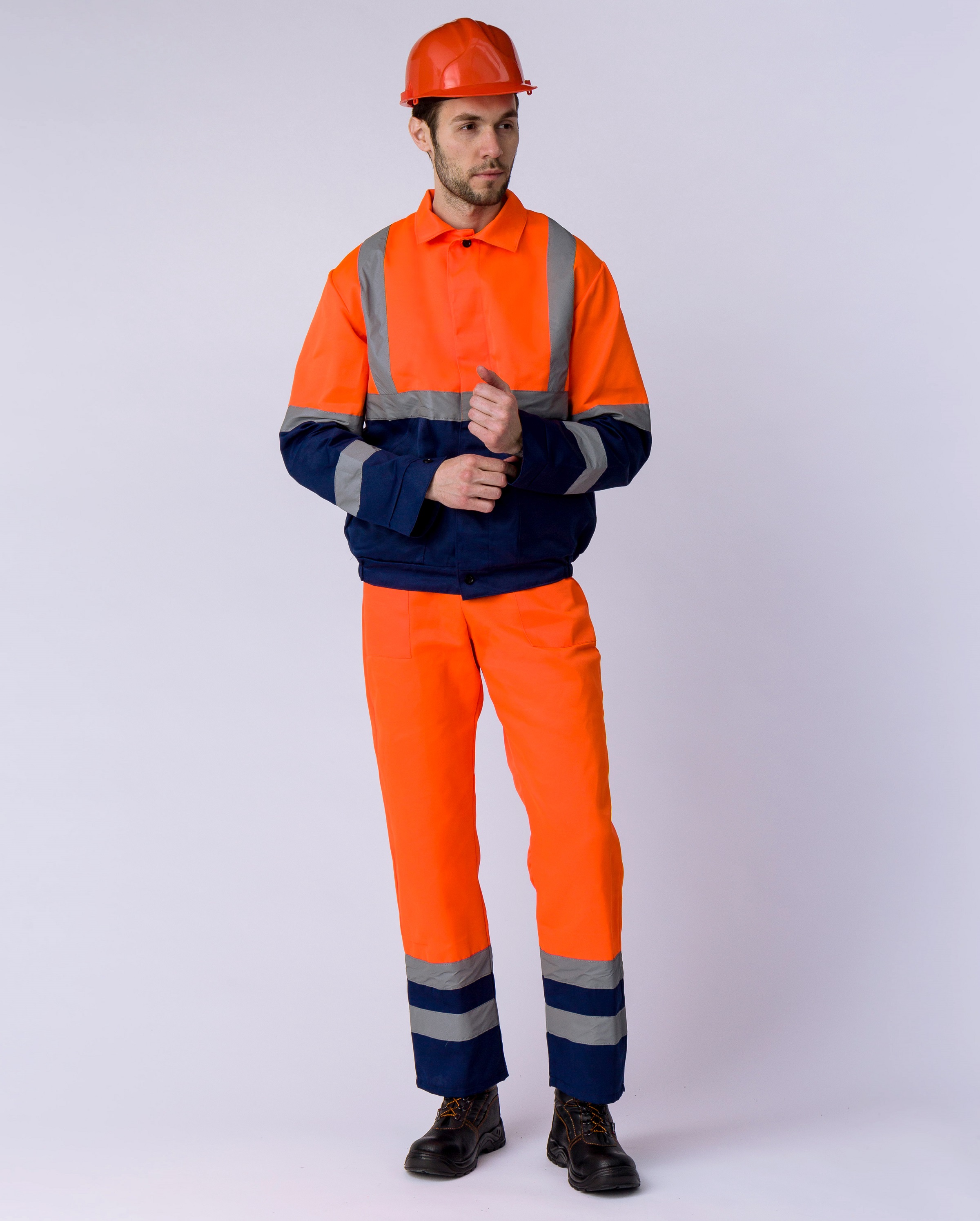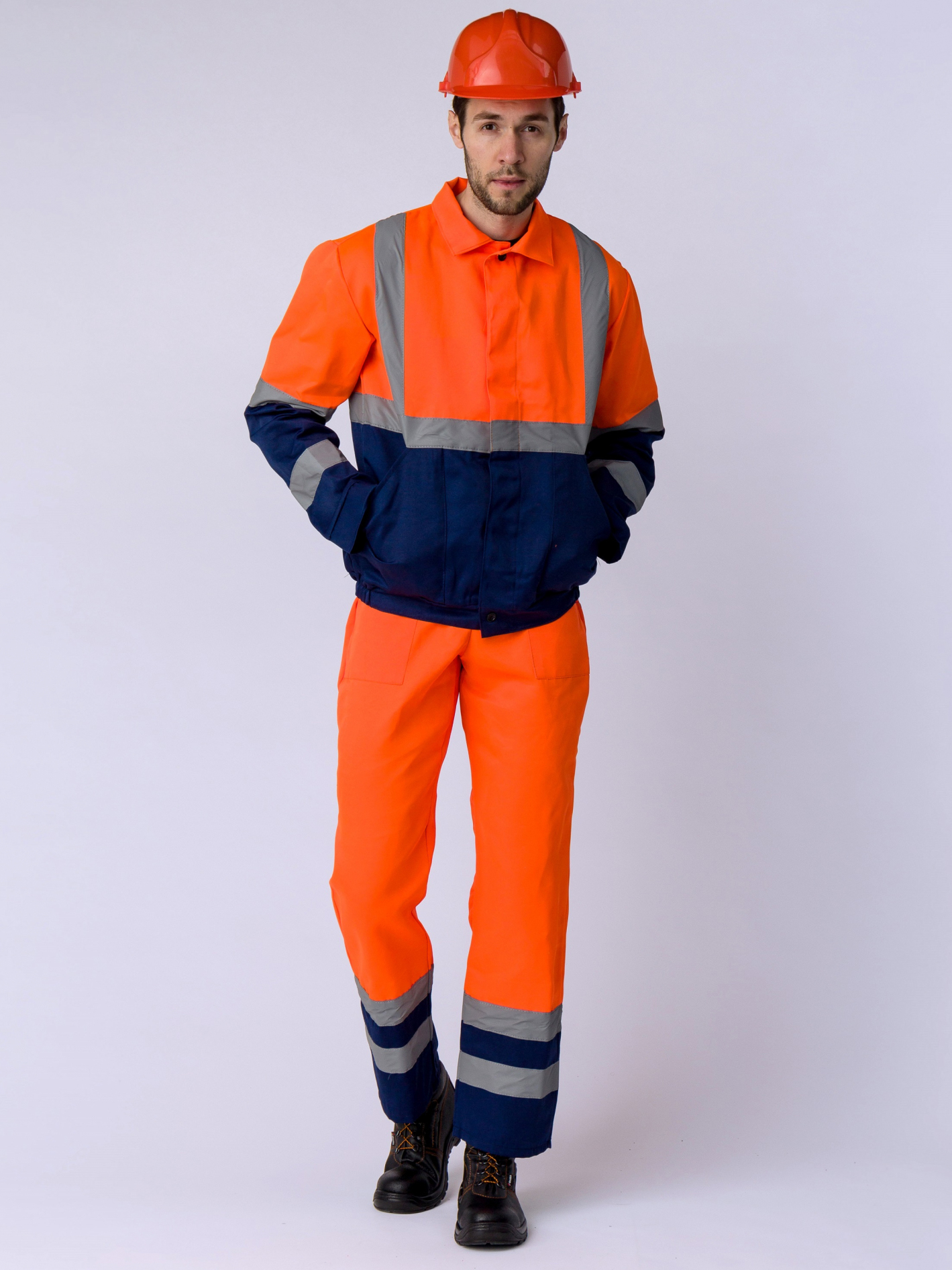 Костюм сигнальный с укороченной курткой (тк.Смесовая,210) п/к, оранжевый/т.синий