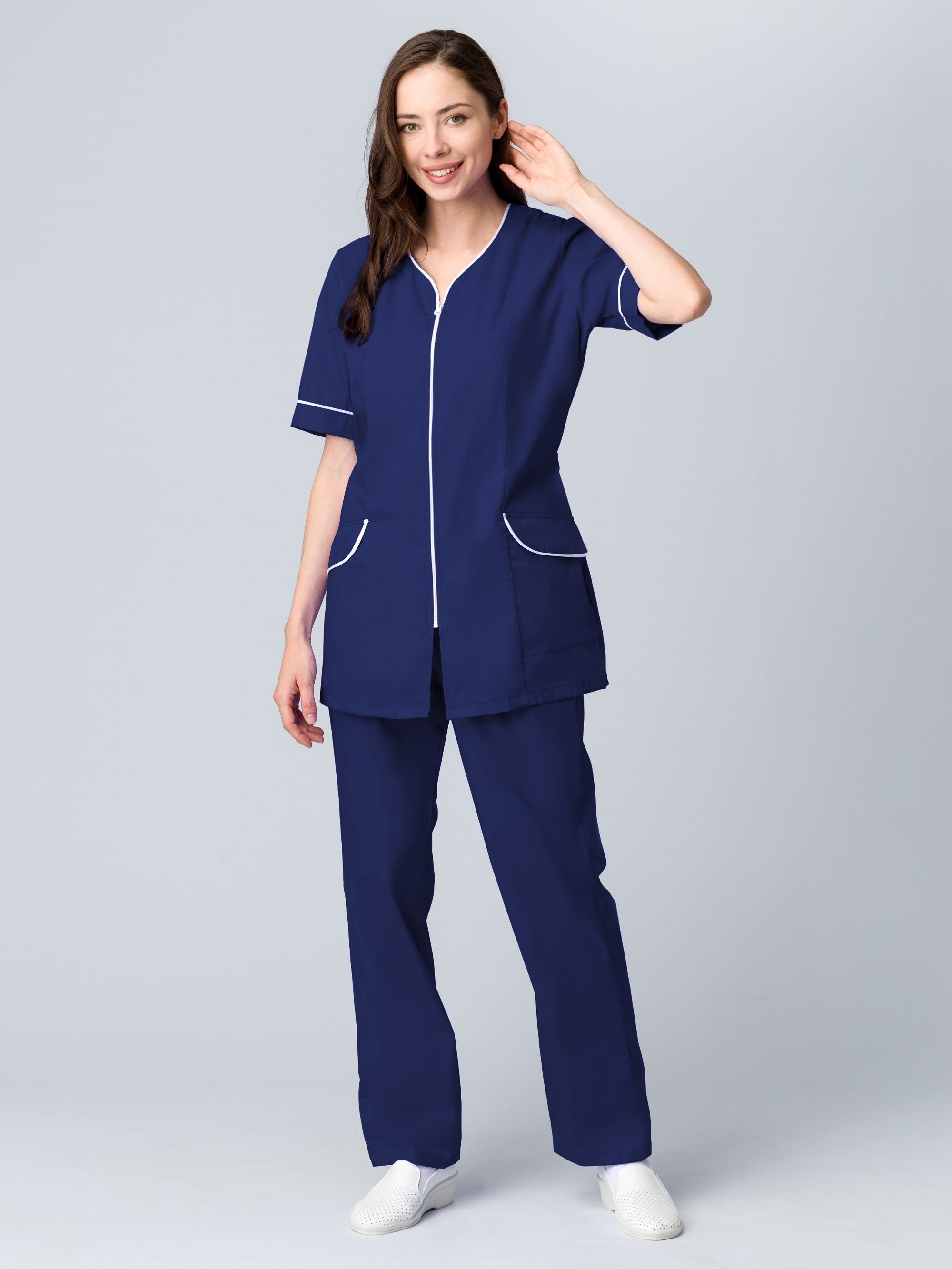 - атласным белым кантом отделаны клапаны карманов, горловина и рукава