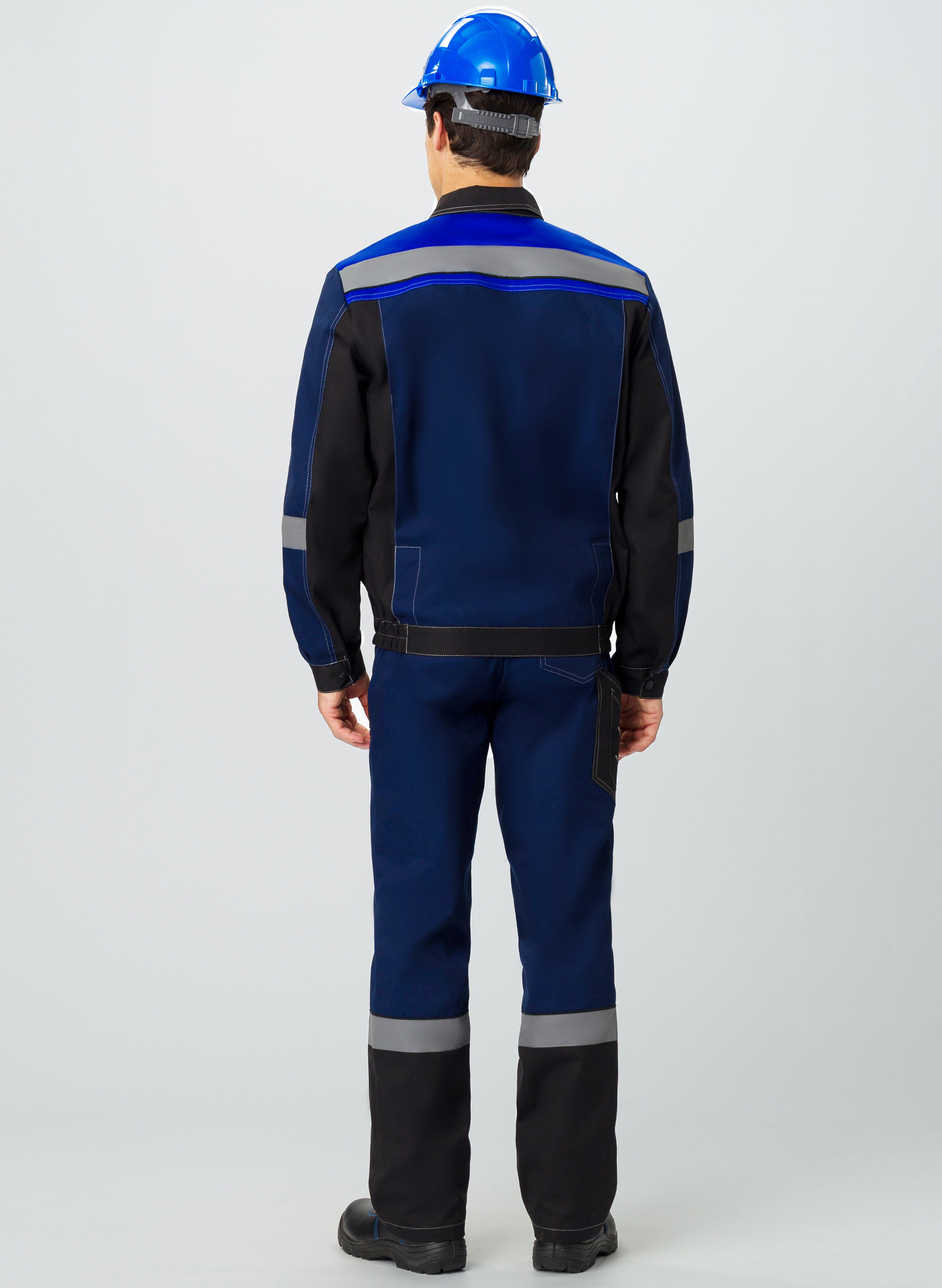 - по кокеткам, полочкам, спинке, рукавам и брючинам расположены световозвращающие полосы, что позволяет использовать костюм в условиях плохой видимости