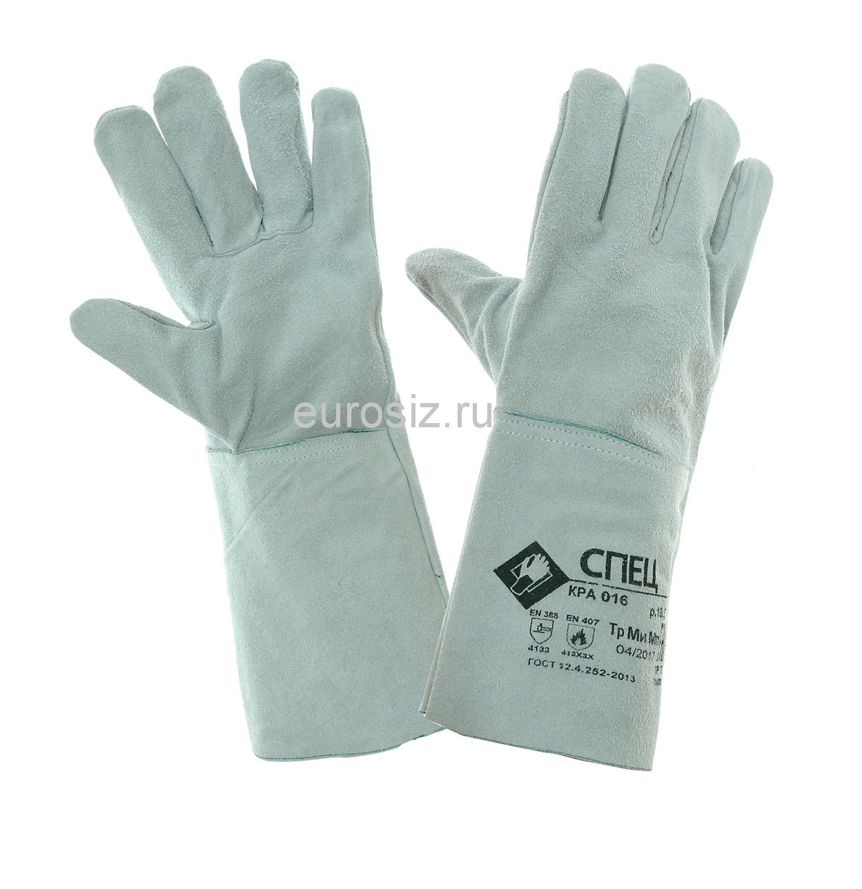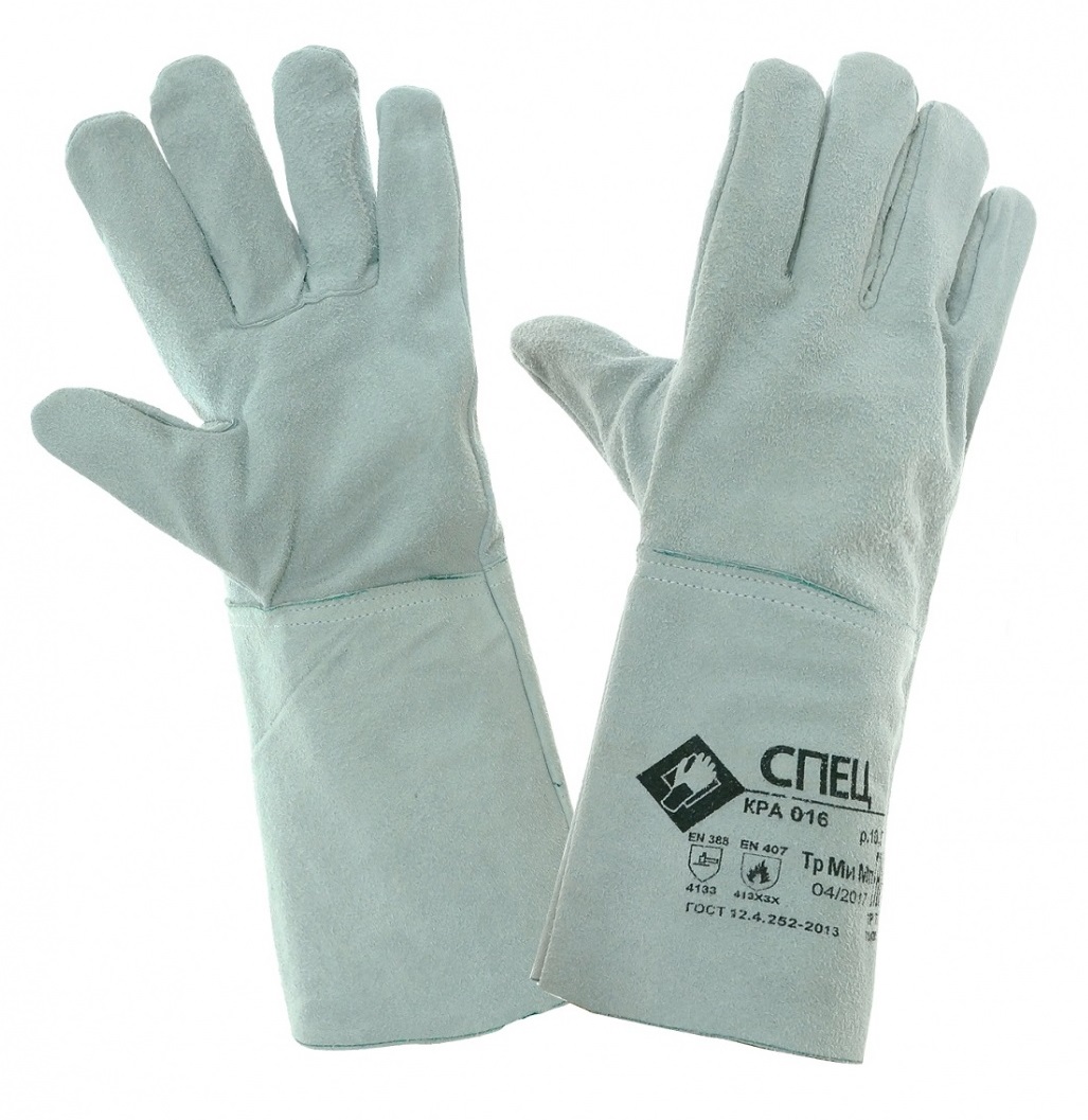 Перчатки сварщика (краги) СПЕЦ спилковые предназначены для защиты рук от механических воздействий (истирание, прокол, порез), искр и брызг расплавленного металла и работ в условиях повышенных температур. Перчатки пятипалые без подкладки. Спилок КРС сорта АВ (1,4 +/-0,2 мм), высокая толщина кожаного материала и обработка, обеспечивающая сохранение мягкости спилка в течение длительного времени хранения. Перчатки изготавливаются из высококачественного спилка спинной части шкур и прошедшего предварительный отбор. Швы прошиты усиленными нитками. Внутри краги имеется вшивной ярлык с дополнительной информацией о продукции. Размер 10,5.