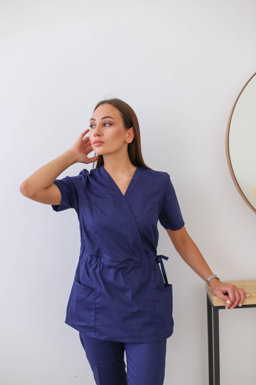 Костюм женский хирургический Модерн-004 (тк.Стрейч,120) MedLine, т.синий