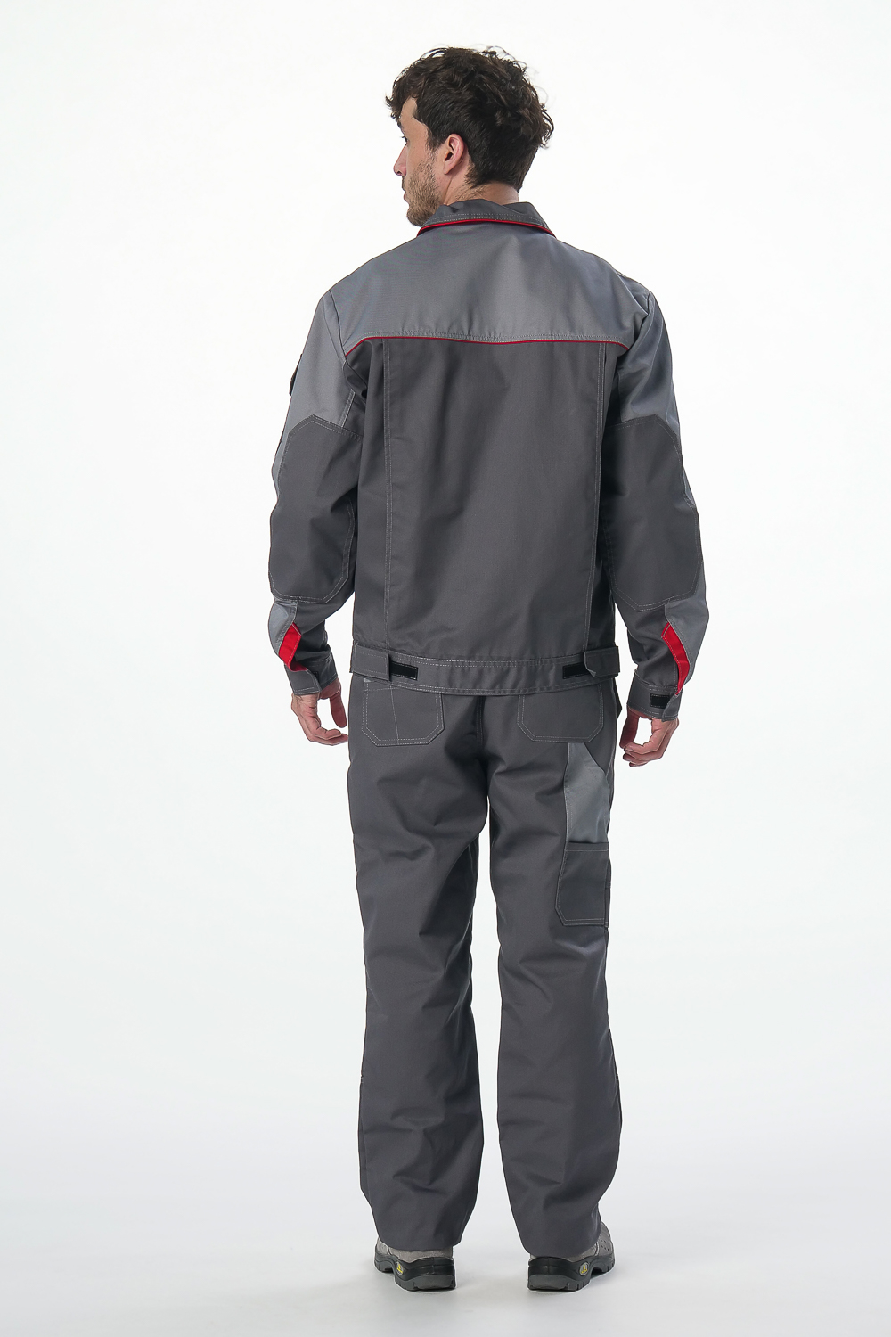 Костюм Драга-1 (тк.Балтекс,240) брюки, т.серый/св.серый/красный