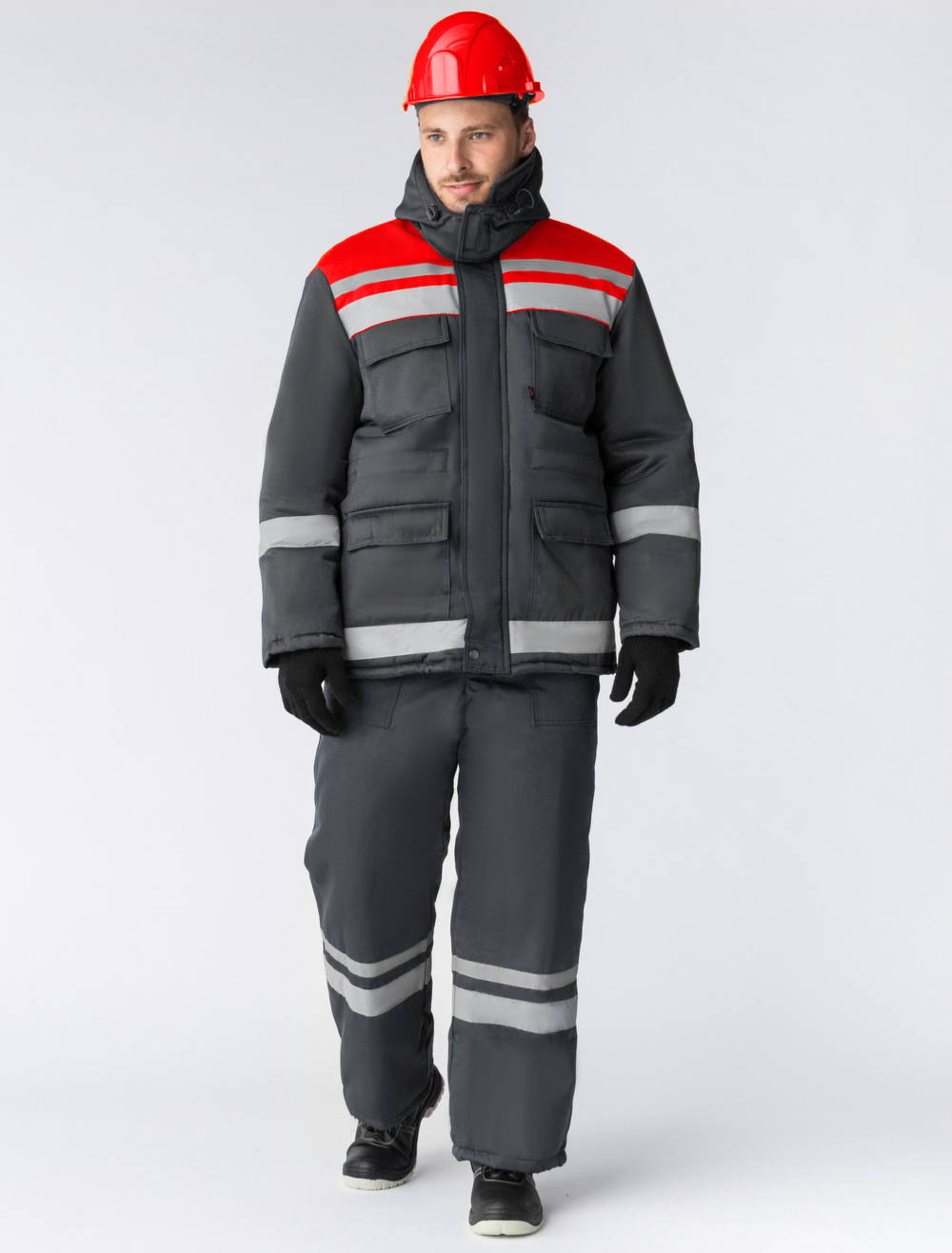 Костюм зимний Труженик-Ультра-1 СОП (тк.Смесовая,210) брюки, т.серый/красный