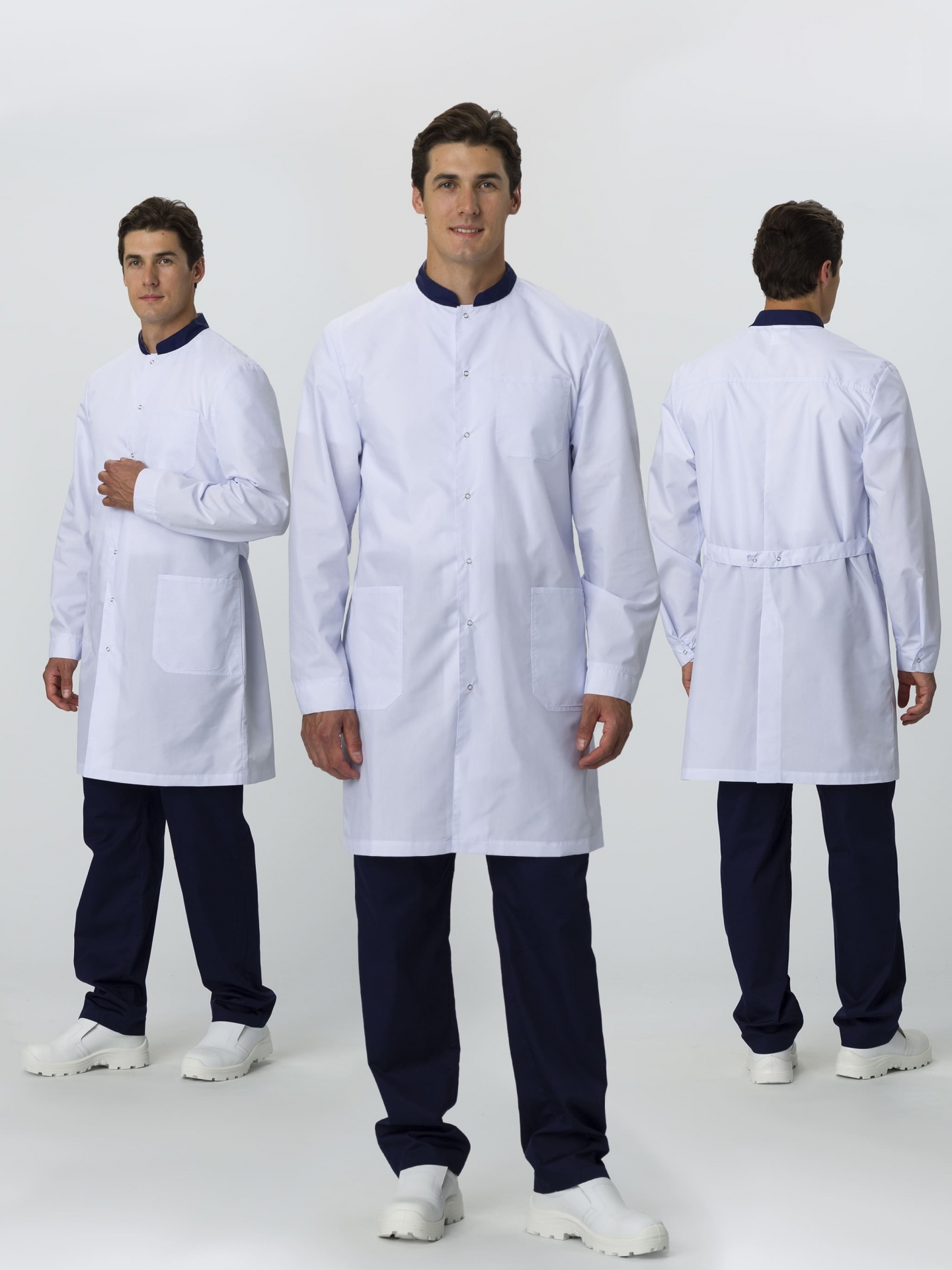 Халат мужской Симпл-001 (тк.Смесовая,120) MedLine, белый/т.синий