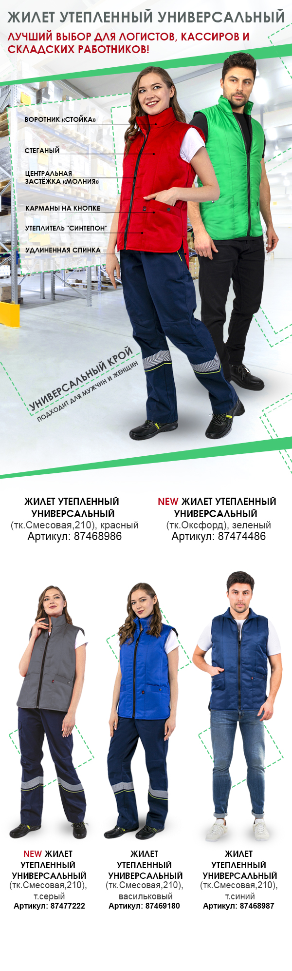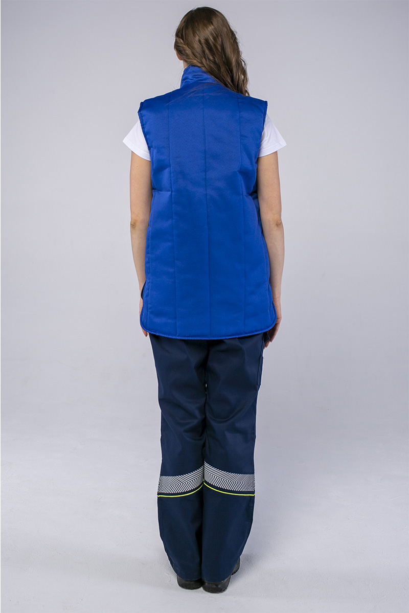Жилет утепленный «Универсальный» предназначен для комфортной работы в холодное время года или повседневной носки на прогулках, во время путешествий и активного отдыха. Универсальный теплый жилет подходит как мужчинам, так и женщинам, прекрасно садится по фигуре и не стесняет движения благодаря боковым разрезам с округлыми углами. Удлиненная спинка полностью закрывает поясницу, препятствуя ее переохлаждению даже во время наклонов, а с помощью молнии жилет удобно надевать и снимать. Благодаря плотной ткани с влагоотталкивающей пропиткой жилетка надежно защищает от осадков и отличается износостойкостью. Утеплитель синтепон помогает сохранить тепло, а воротник-стойка закрывает шею от ветра. Безрукавка дополняется удобными боковыми карманами на кнопках, где можно размещать необходимые мелочи и расходники. Для указания ФИО присутствует этикетка с изнаночной стороны.