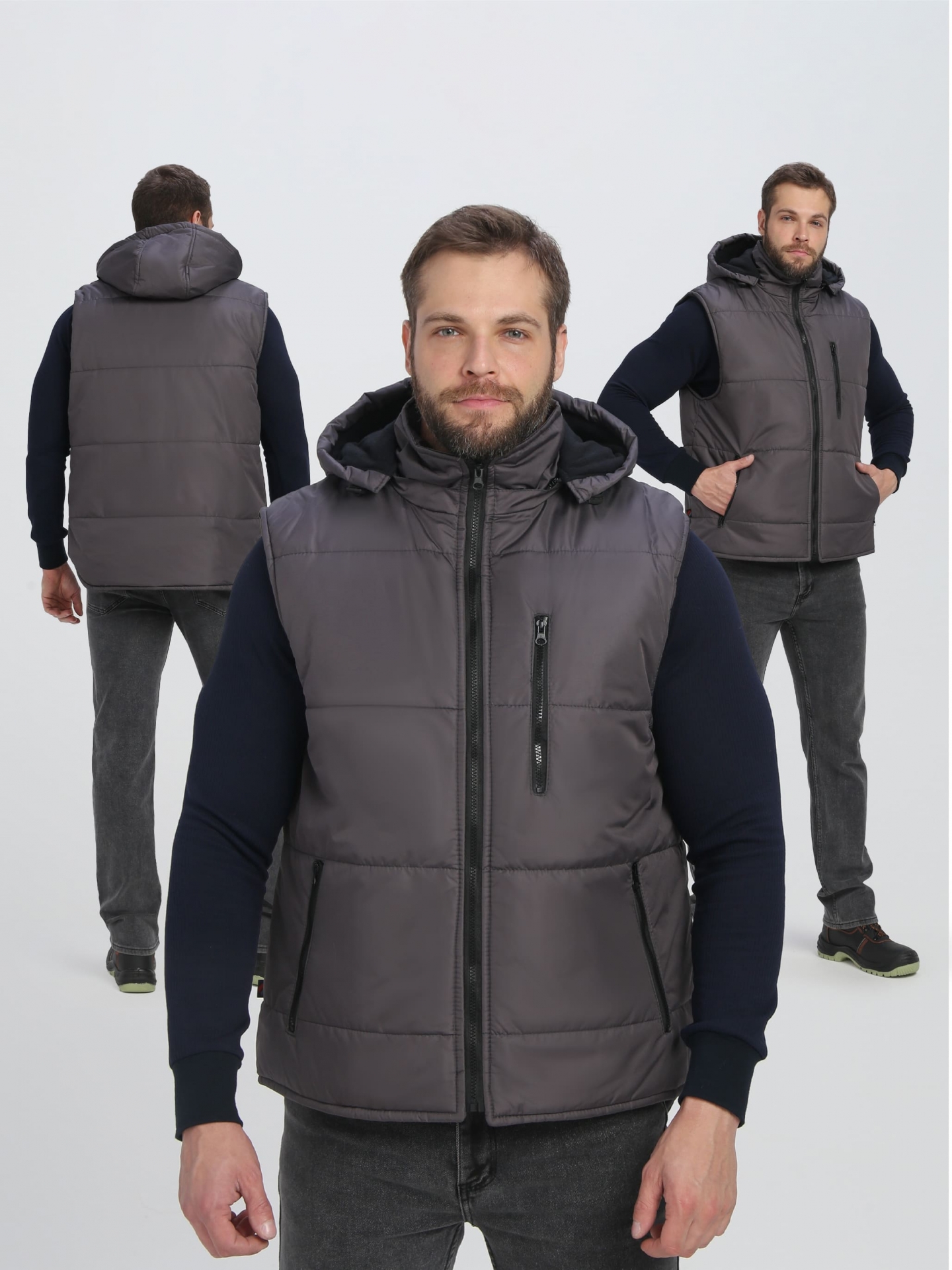 Жилет утепленный с капюшоном Резко (тк.Таслан,135), т.серый