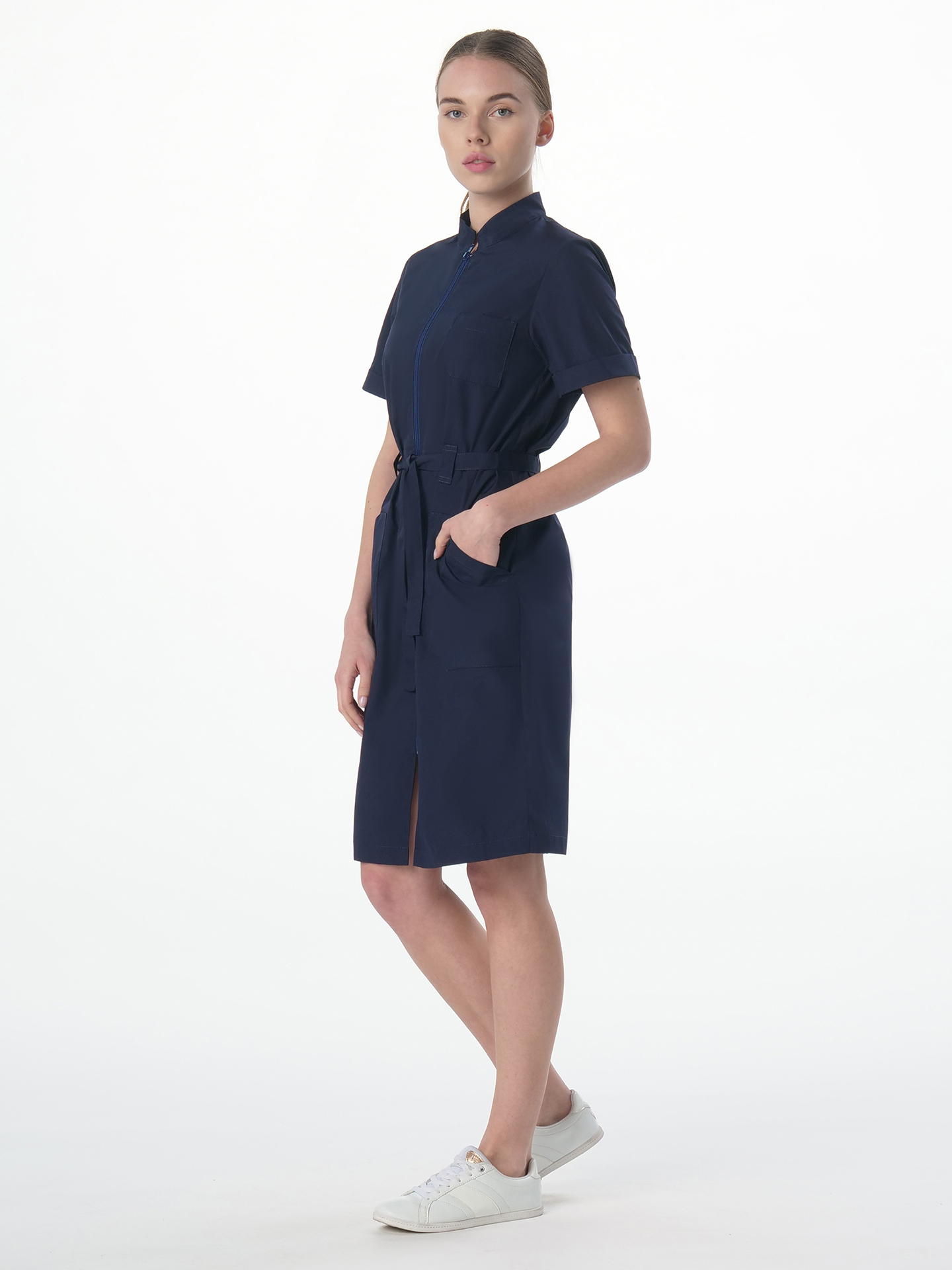 -халат полуприлегающего силуэта с центральной застежкой на тесьму молния