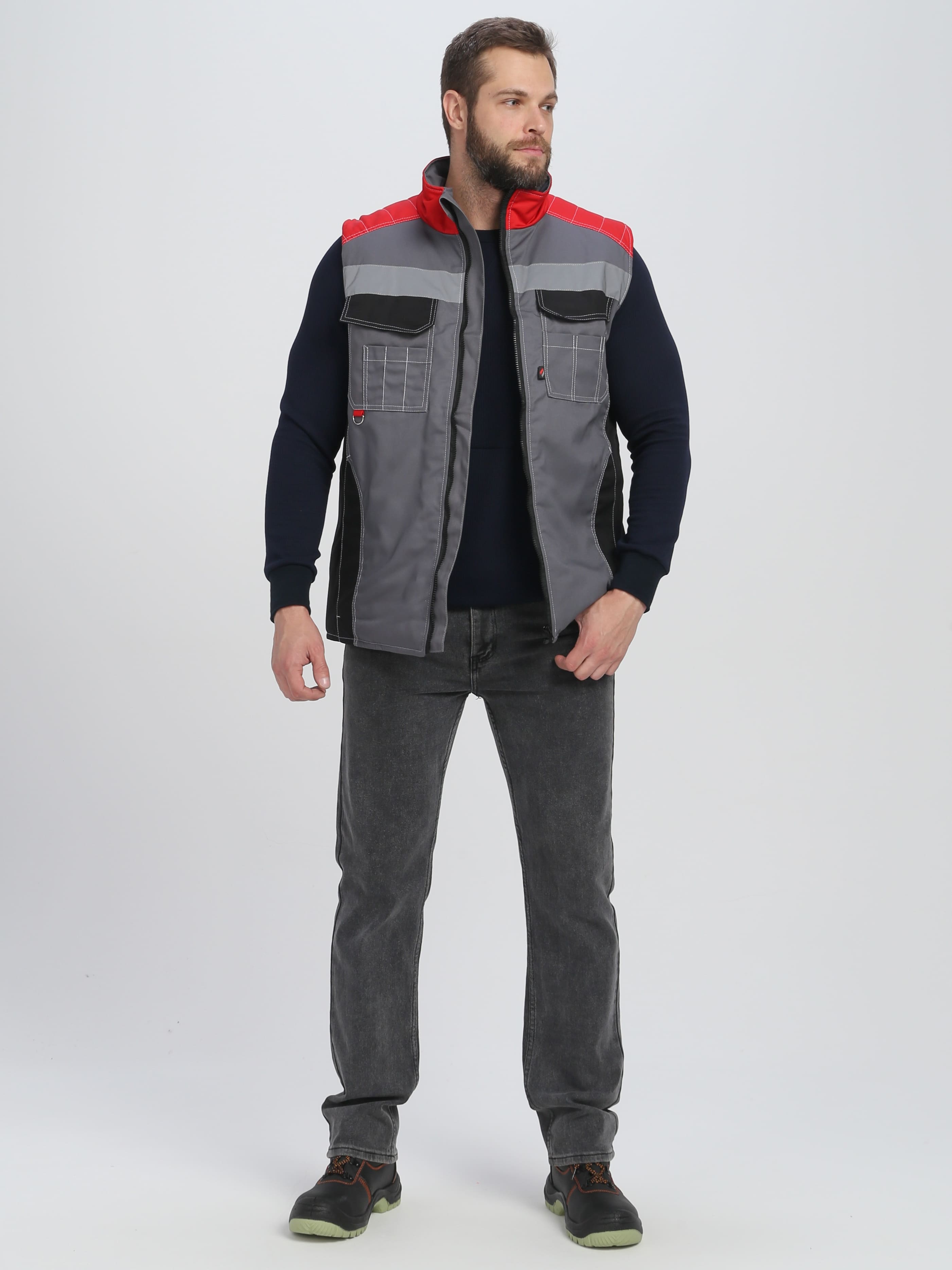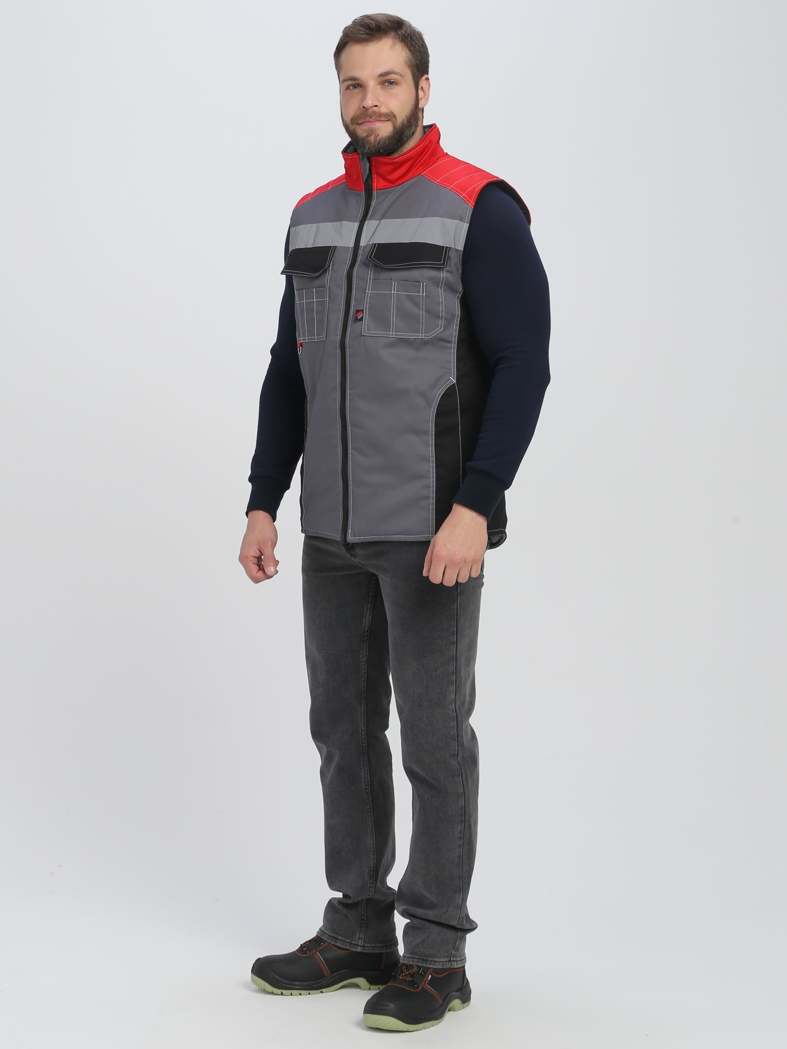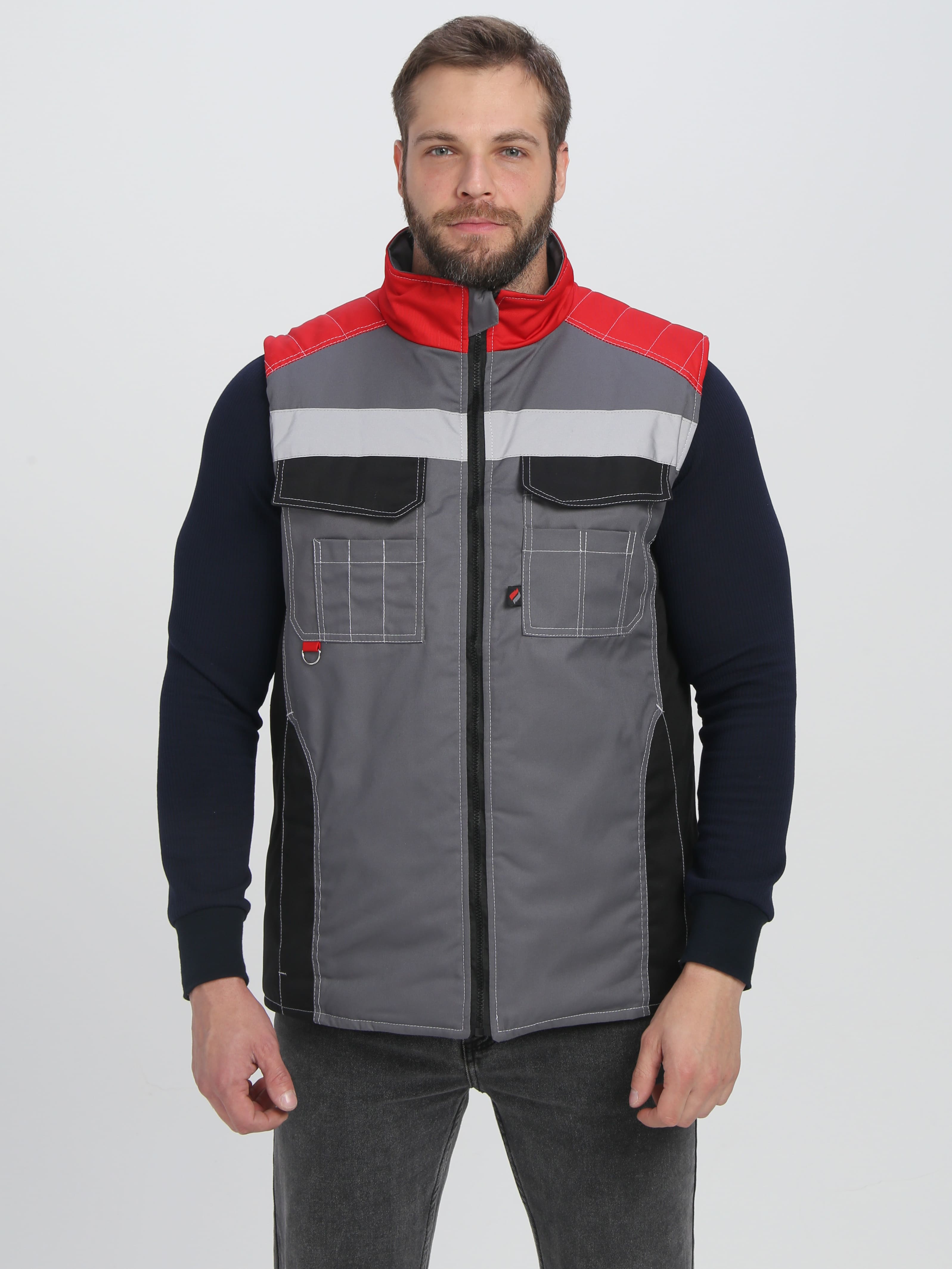 Жилет утепленный Вектрон СОП (тк.Смесовая,240), серый/черный/красный