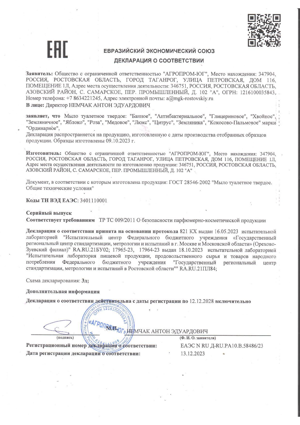 | Код ТН ВЭД: | 3401110001 |