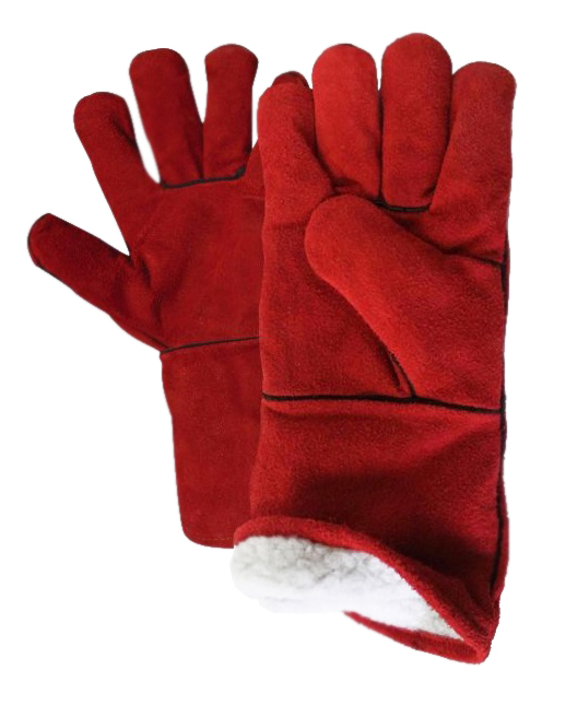 Выполнены из высококачественного красного спилка. Утеплены плотным искусственным мехом (барашка), который надежно защищает руки даже в условиях суровой зимы. Защита от повышенных температур, обладают повышенной износостойкостью и надежной защитой от механических повреждений. Швы усилены вставками из кожи.