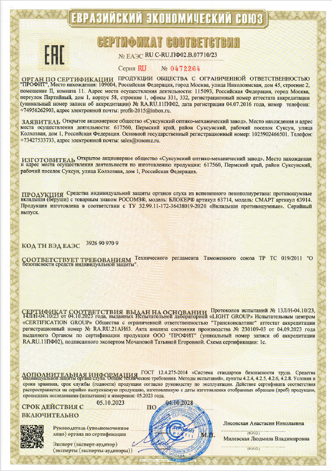 Противошумные вкладыши изготовлены из мягкого гипоаллергенного вспененного полиуретана, принимают форму слухового канала.