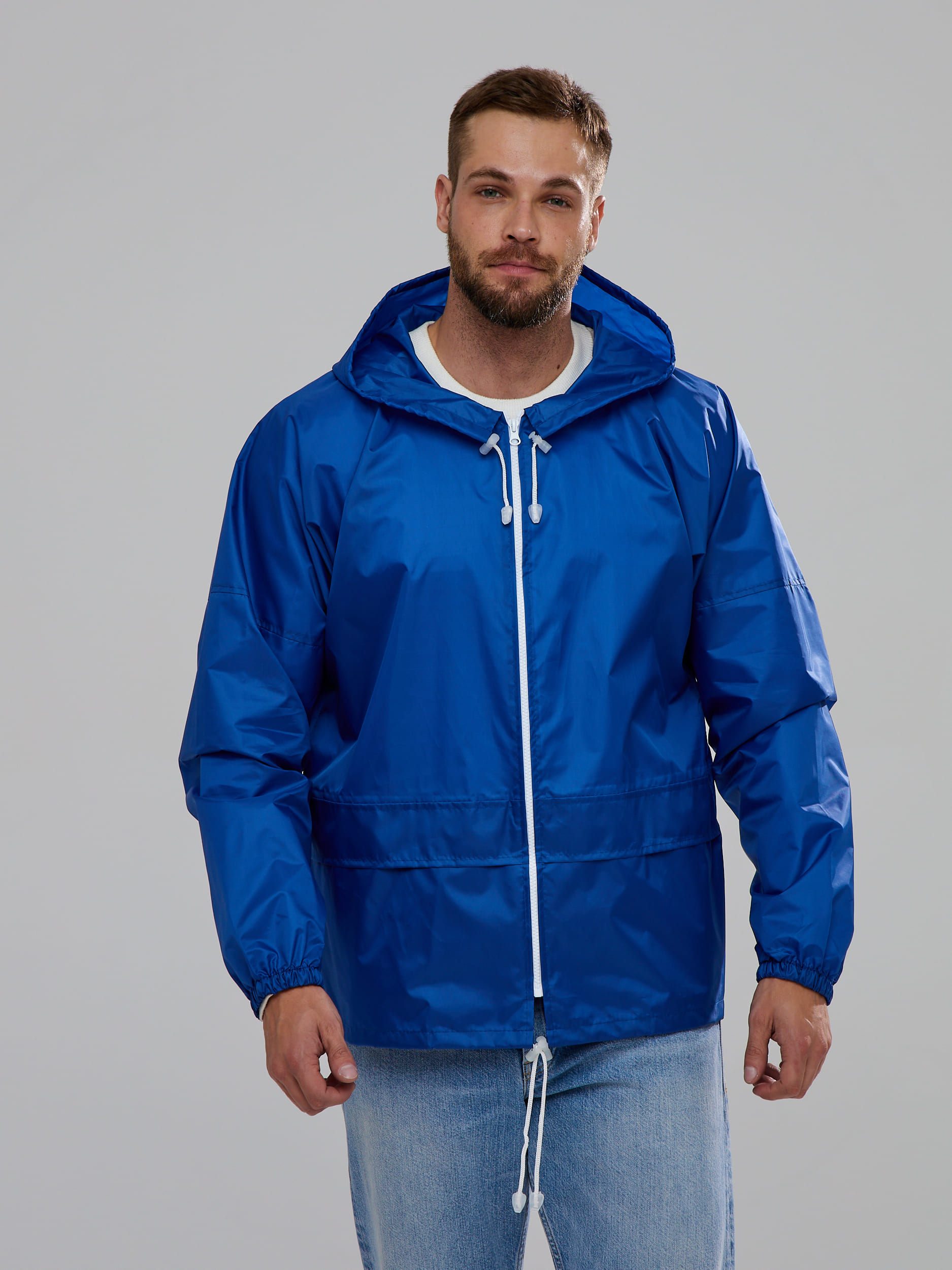 Удобные карманы, застежка на молнии и минимальное количество швов делают куртку-дождевик серии Лидер синего цвета удобной и практичной. Так же данная модель отлично брендируется