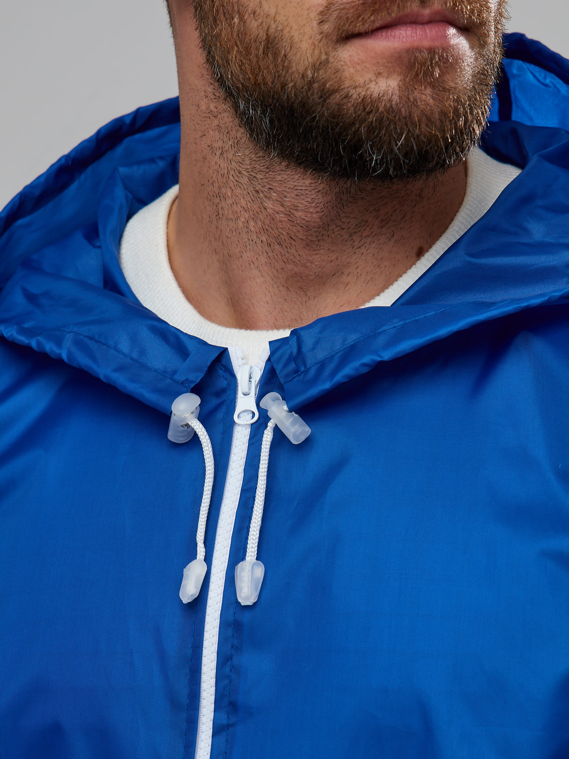 В качестве материала используется синяя ветро-влагозащитная ткань Taffeta/Oxford