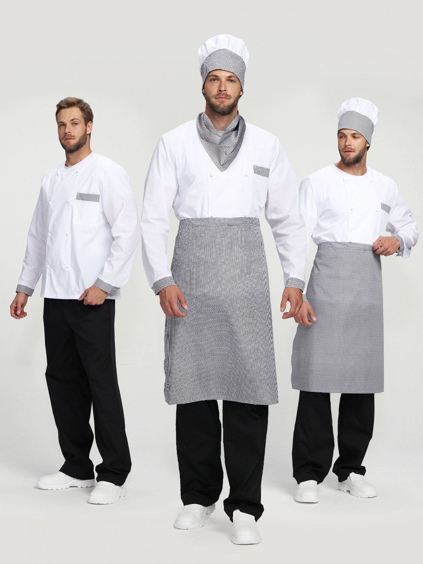 Костюм повара Шефирон (тк.Смесовая,120), белый/черный/принт-клетка