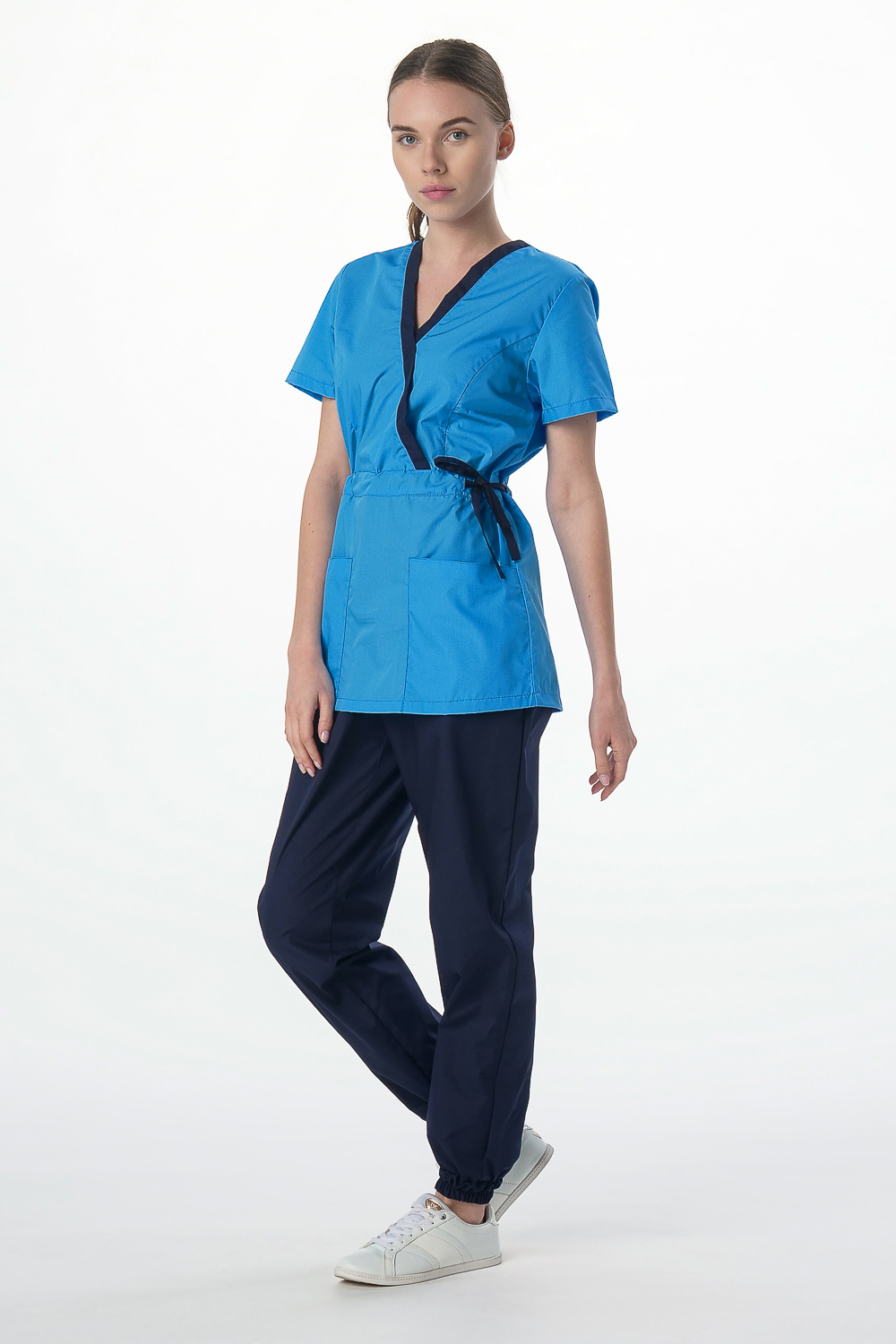 Костюм женский Симпл-001 (тк.Смесовая,120) MedLine, т.синий/ярко-голубой