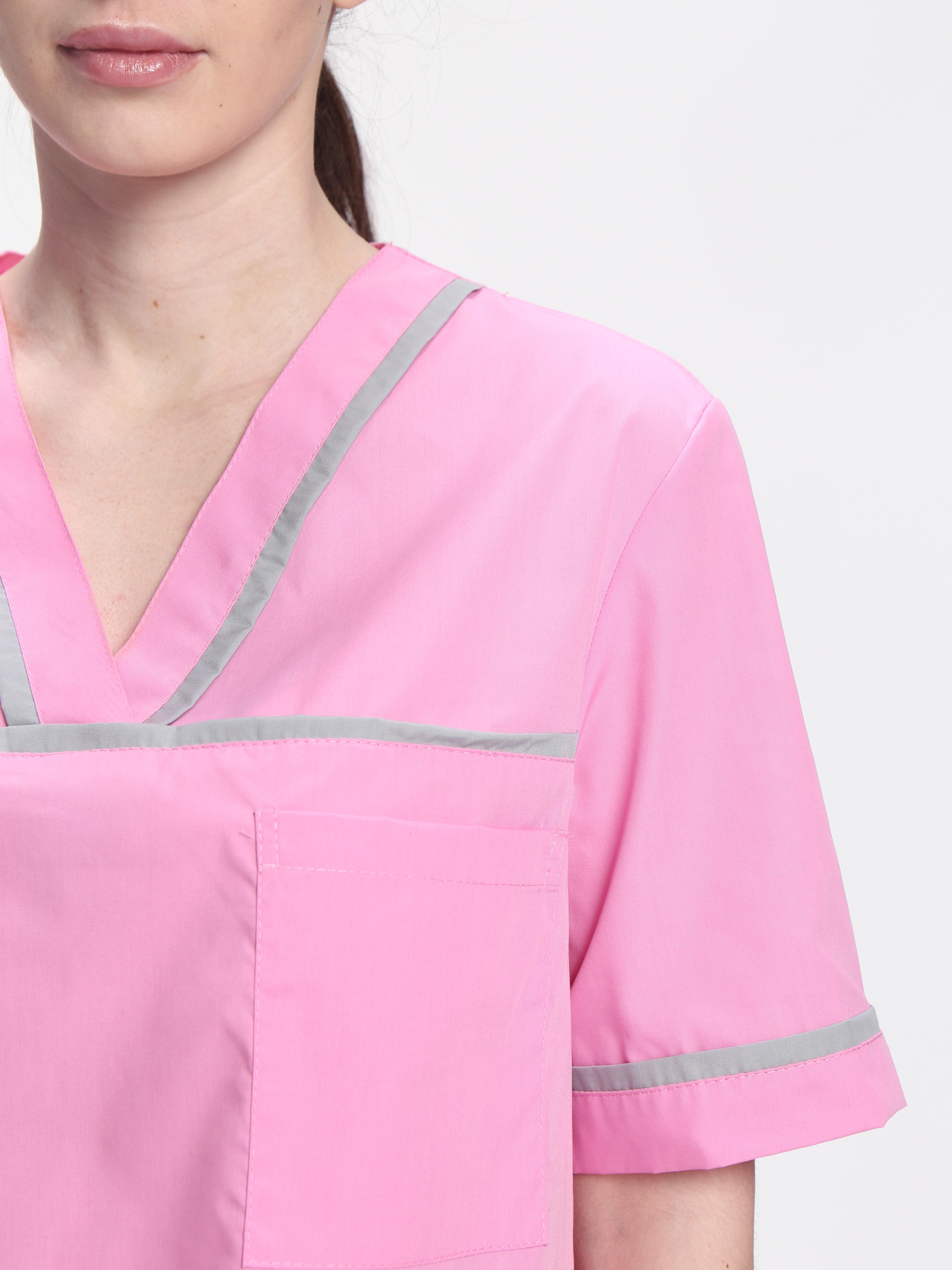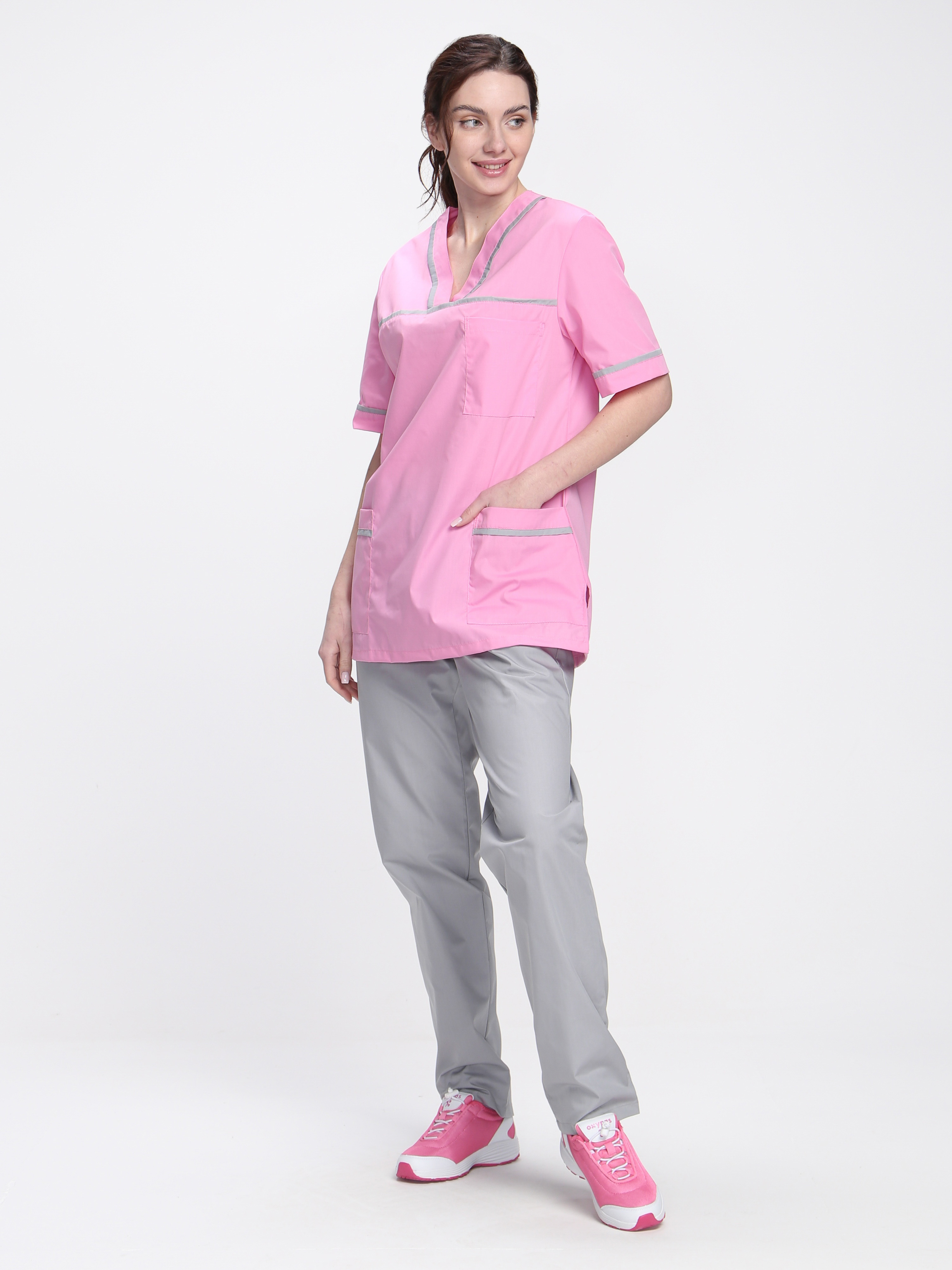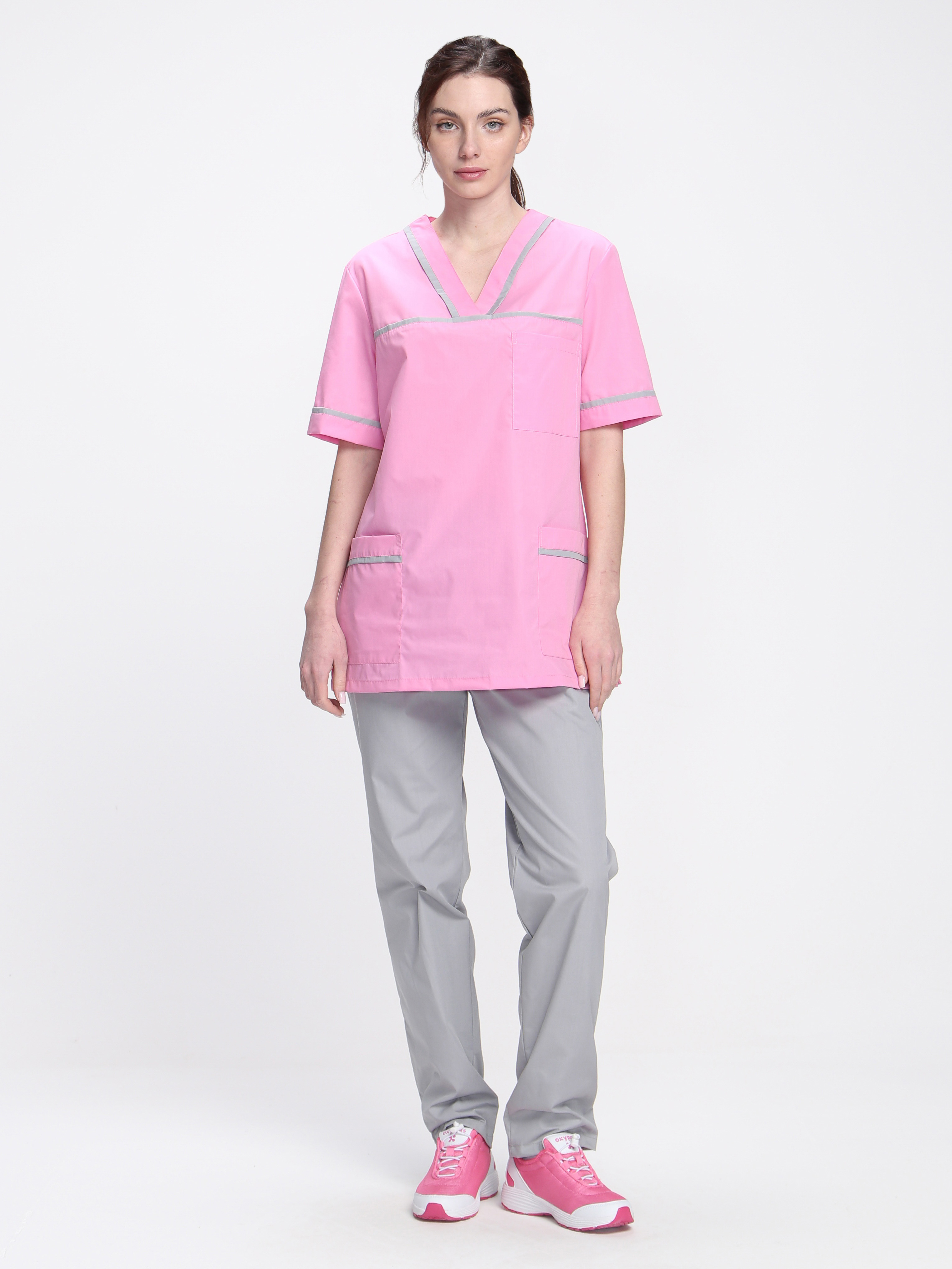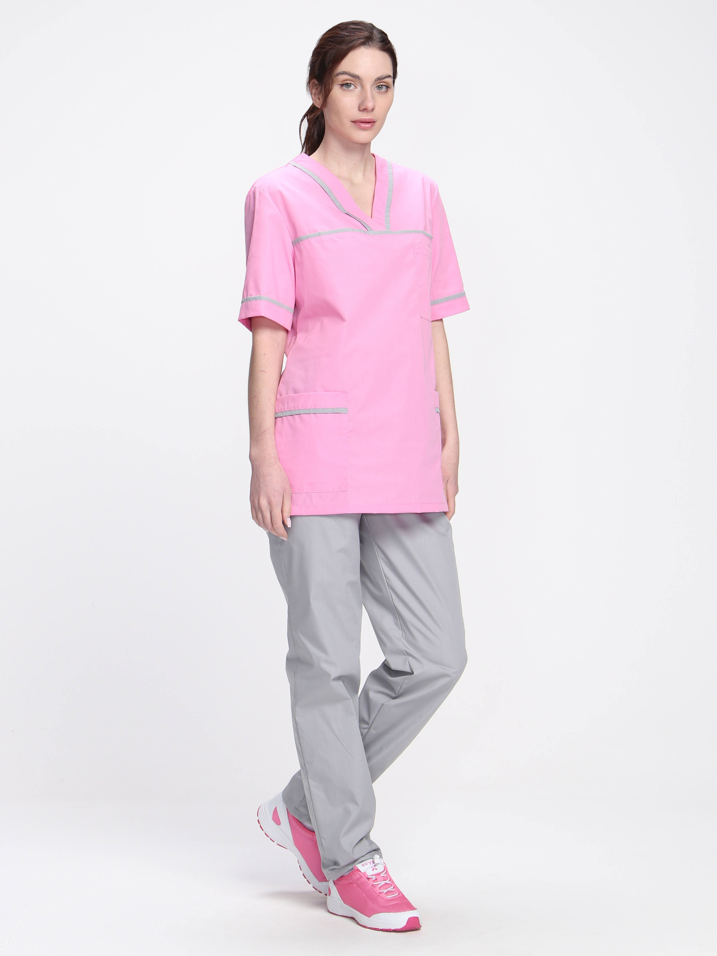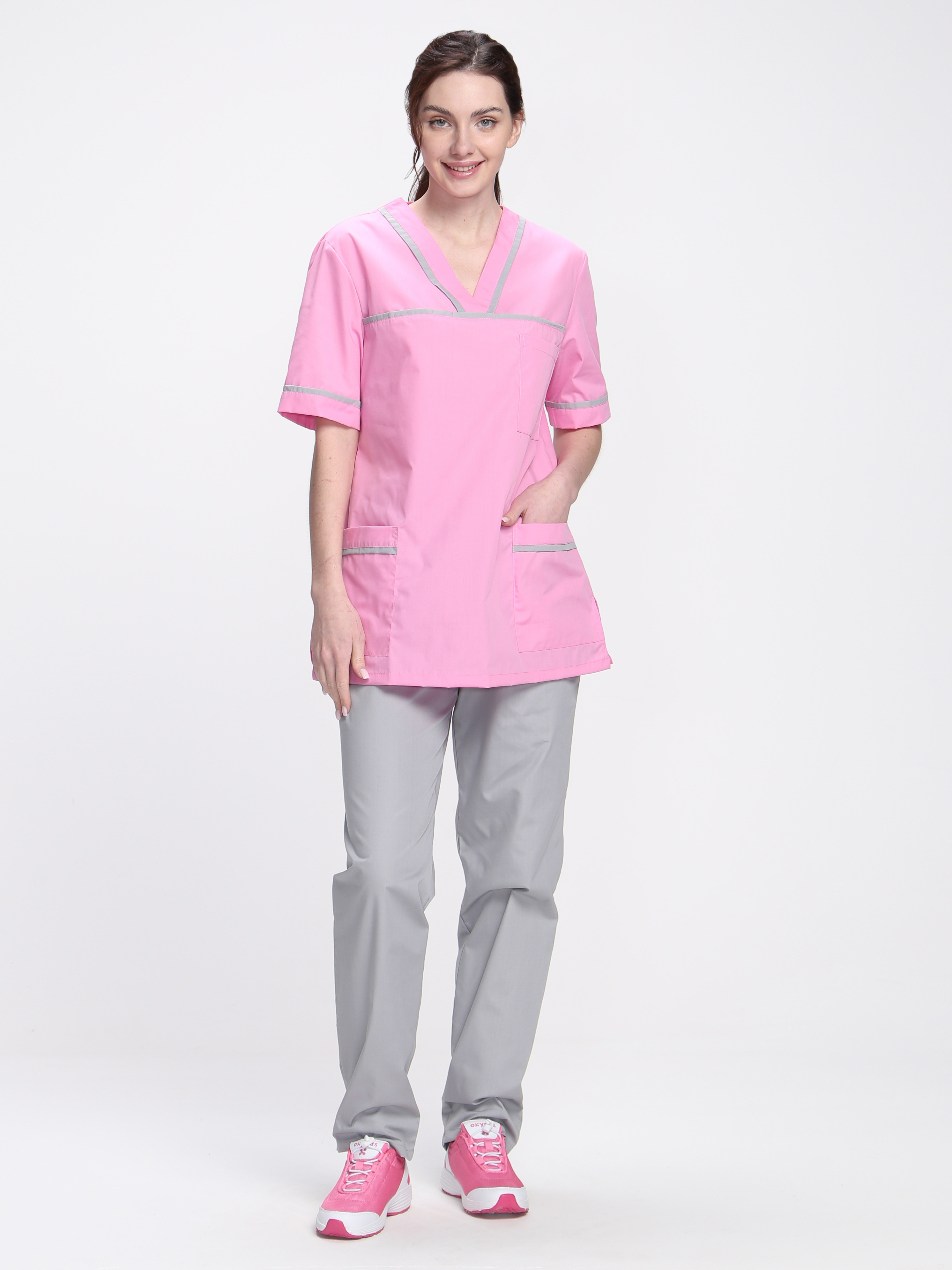 Стильный женский медицинский костюм «Ирис» разработан для сотрудниц медицинских учреждений, салонов красоты, массажных кабинетов или стоматологий. Костюм медицинский женский состоит из двух предметов: блузка + брюки женские. Спецодежда изготовлена в соответствии с ГОСТ, надежно защищает от общих производственных загрязнений. Костюм выполнен в нежных пудровых оттенках, замечательно сидит по фигуре. Прямая удлиненная блуза не стесняет движения, комфортна в работе. Для хранения мелочей предусмотрены вместительные карманы: боковые и нагрудный. Декоративный кант на карманах, горловине и кокетке придает костюму изысканный внешний вид. Рабочие брюки оснащены поясом из эластичной тесьмы для комфортной работы в течение длительного периода времени. Костюм изготовлен из легкой дышащей ткани, которая не выцветает и не садится после многократных стирок.