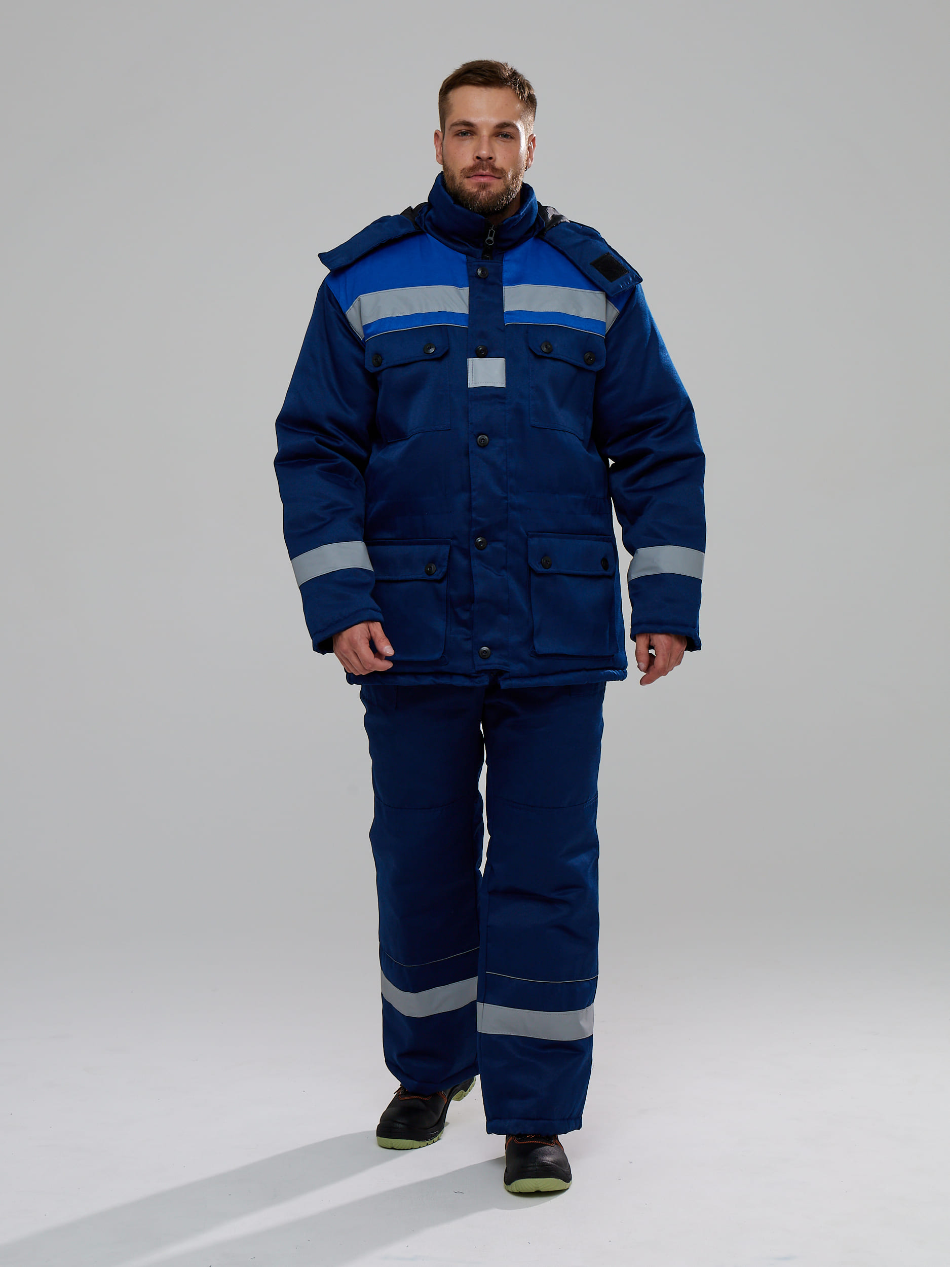 Костюм состоин из куртки и комбинезона, который отлично защищает от низких температур и влаги.