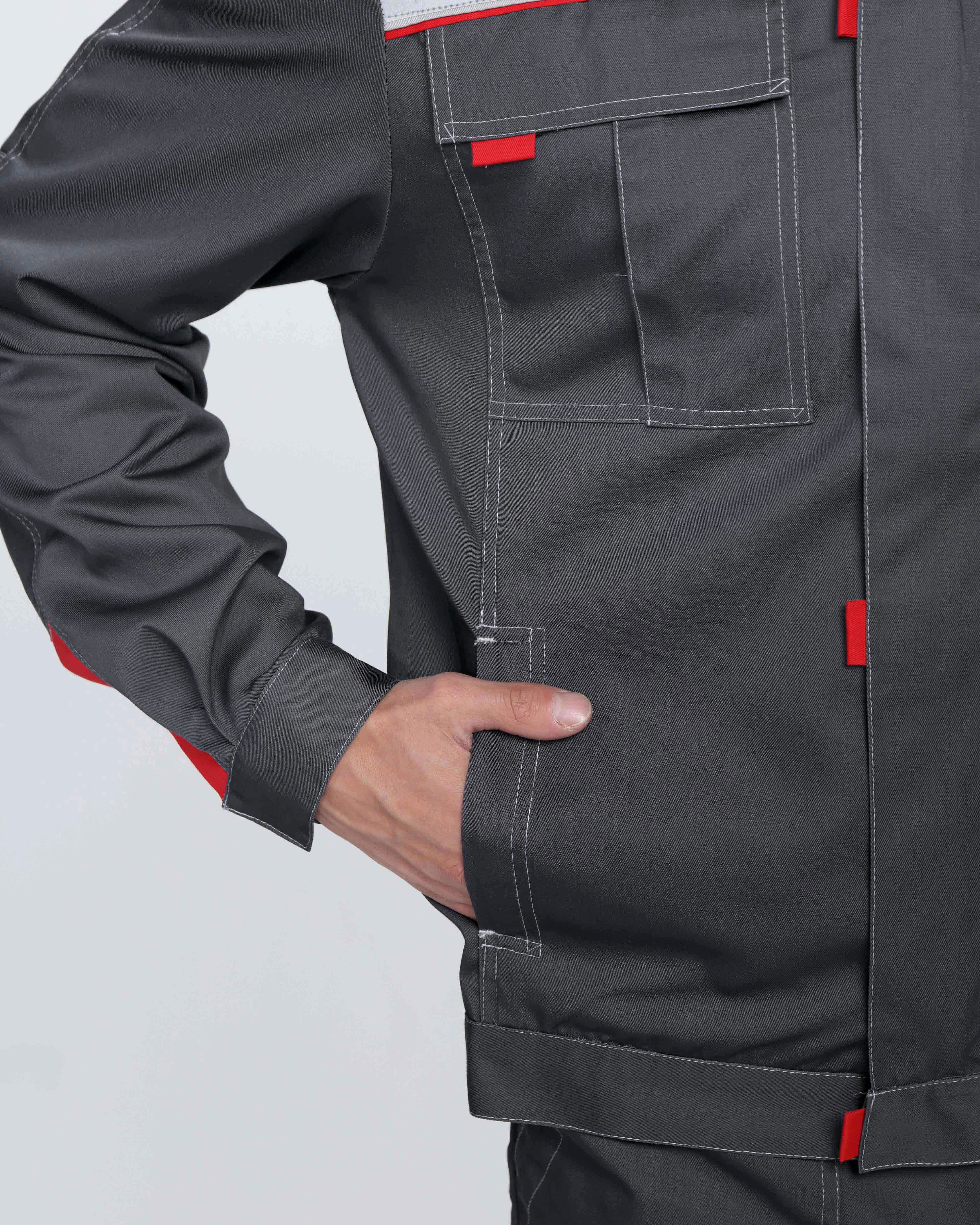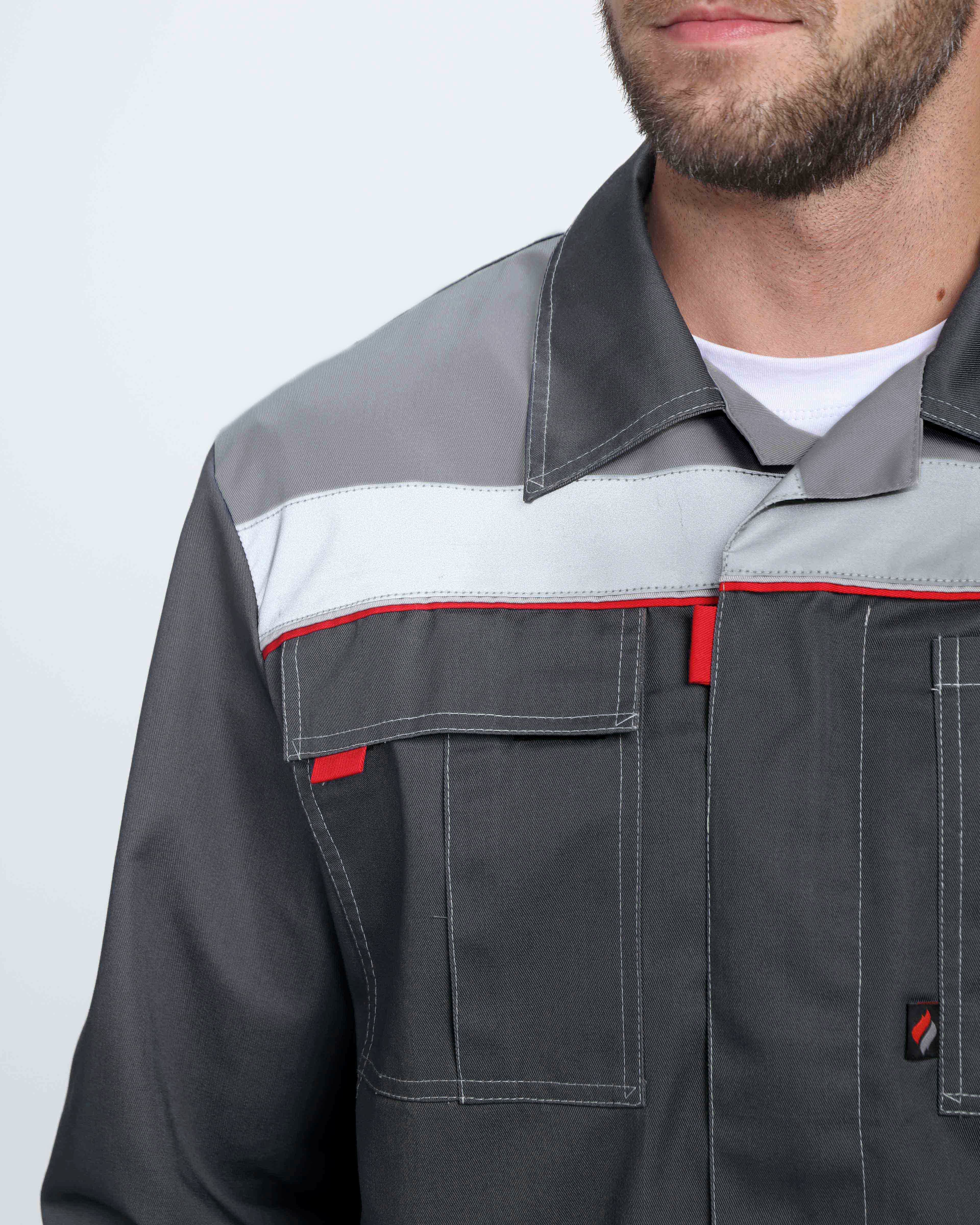 Костюм Флофт-1 Премиум СОП У. (тк.Смесовая,240) брюки, т.серый/серый/красный