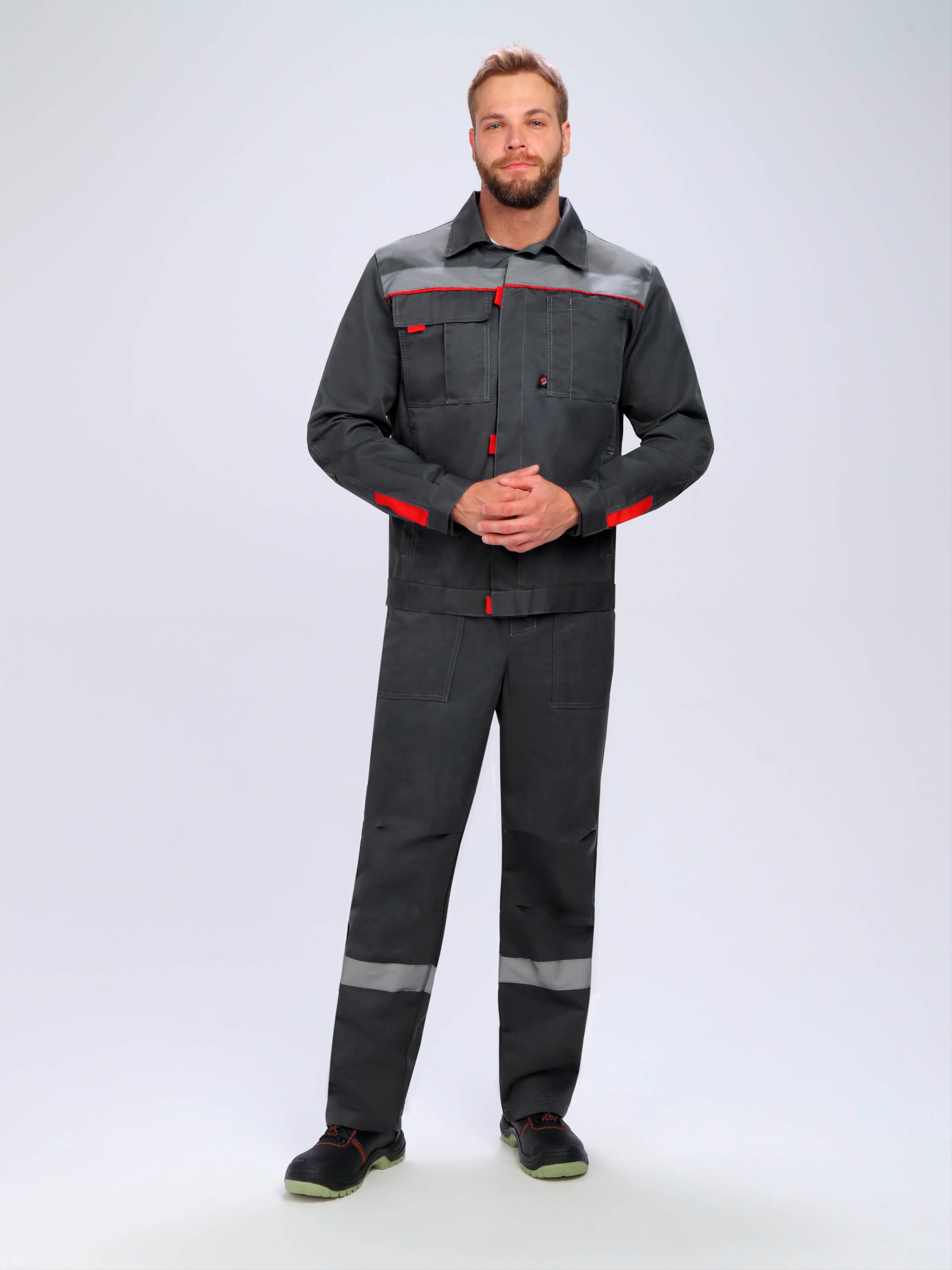 Костюм Флофт-2 Премиум СОП (тк.Смесовая,240) п/к, т.серый/серый/красный