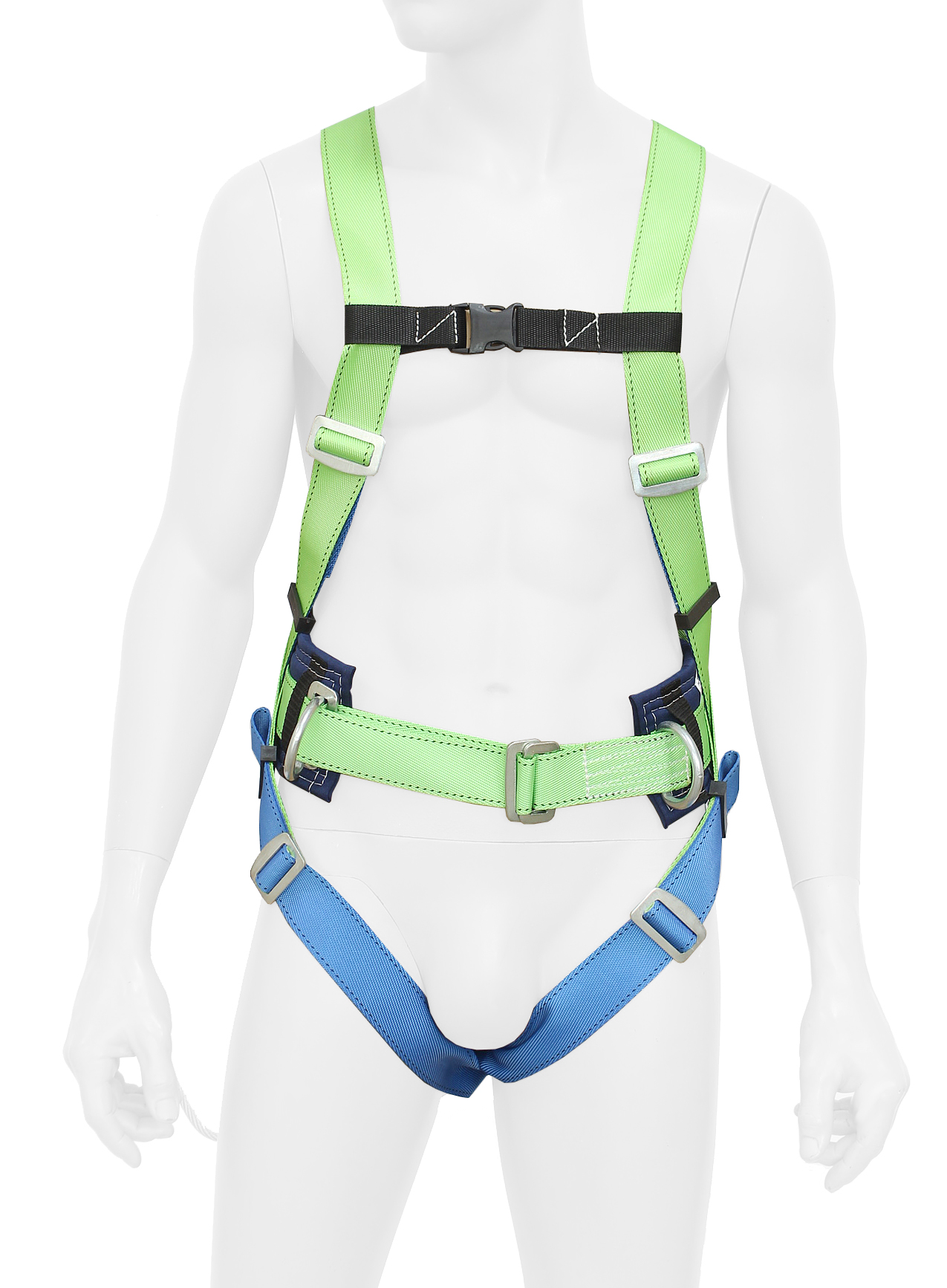 Состоит из привязи ремня с пряжкой, наплечных и набедренных лямок, кушака, двух D-колец на поясе (для удержания и позиционирования) и одного на спине и страховочного стропа из полиамидного каната в оплетке с амортизатором. Привязь упакована в водонепроницаемый пакет и содержит паспорт и инструкцию по применению.