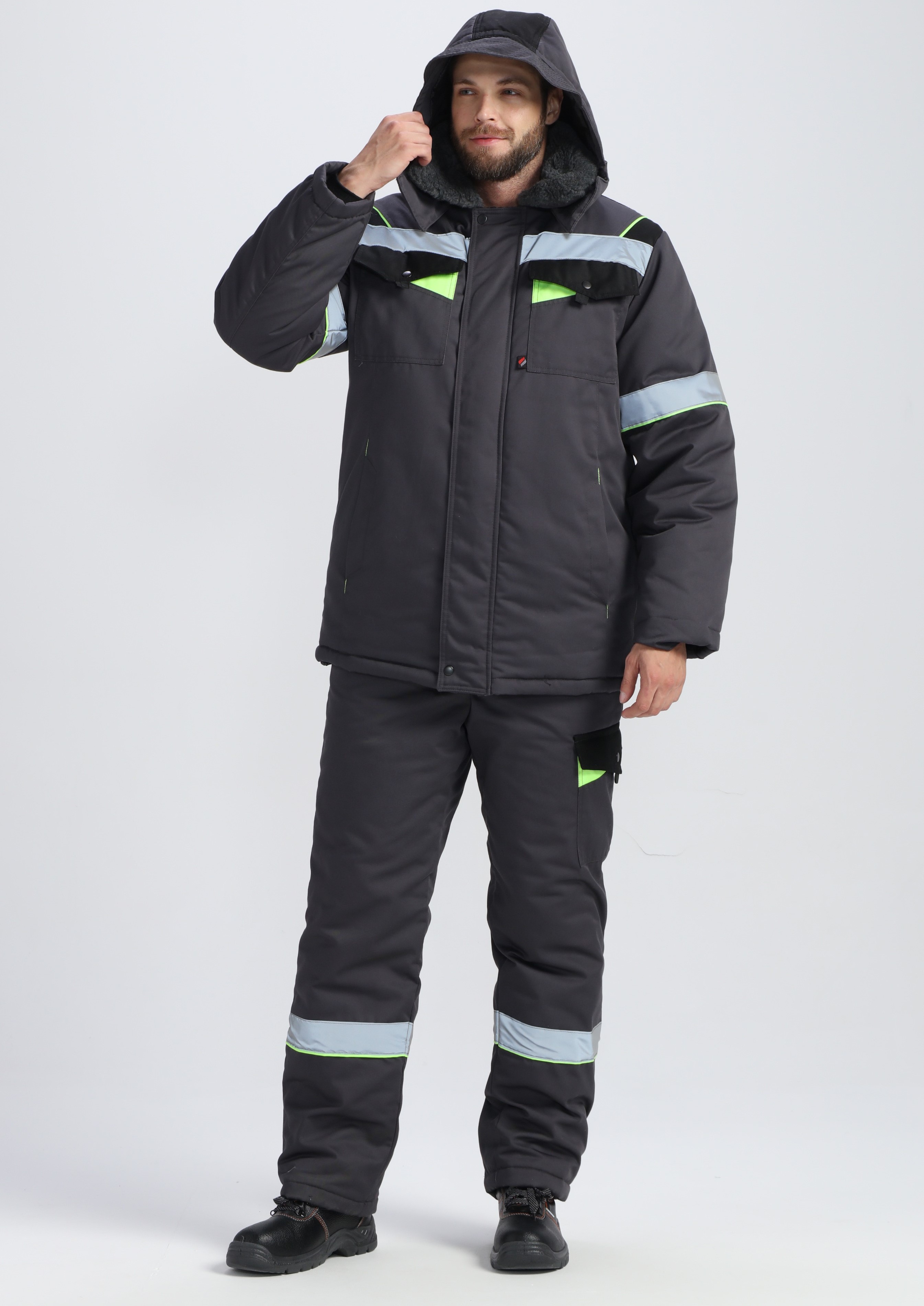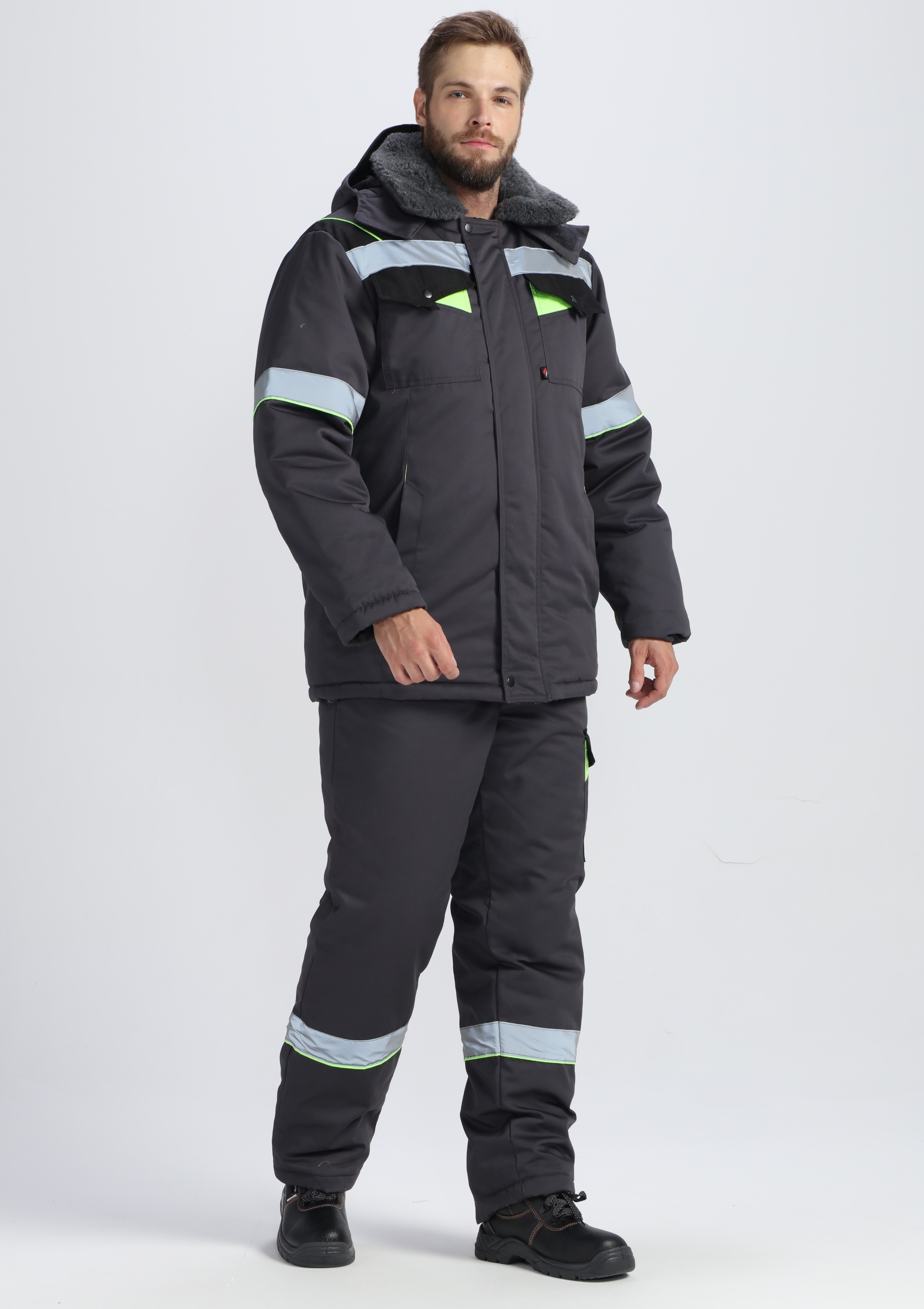 Костюм зимний Корвет СОП (тк.Орион,210) брюки, т.серый/черный/лимонный
