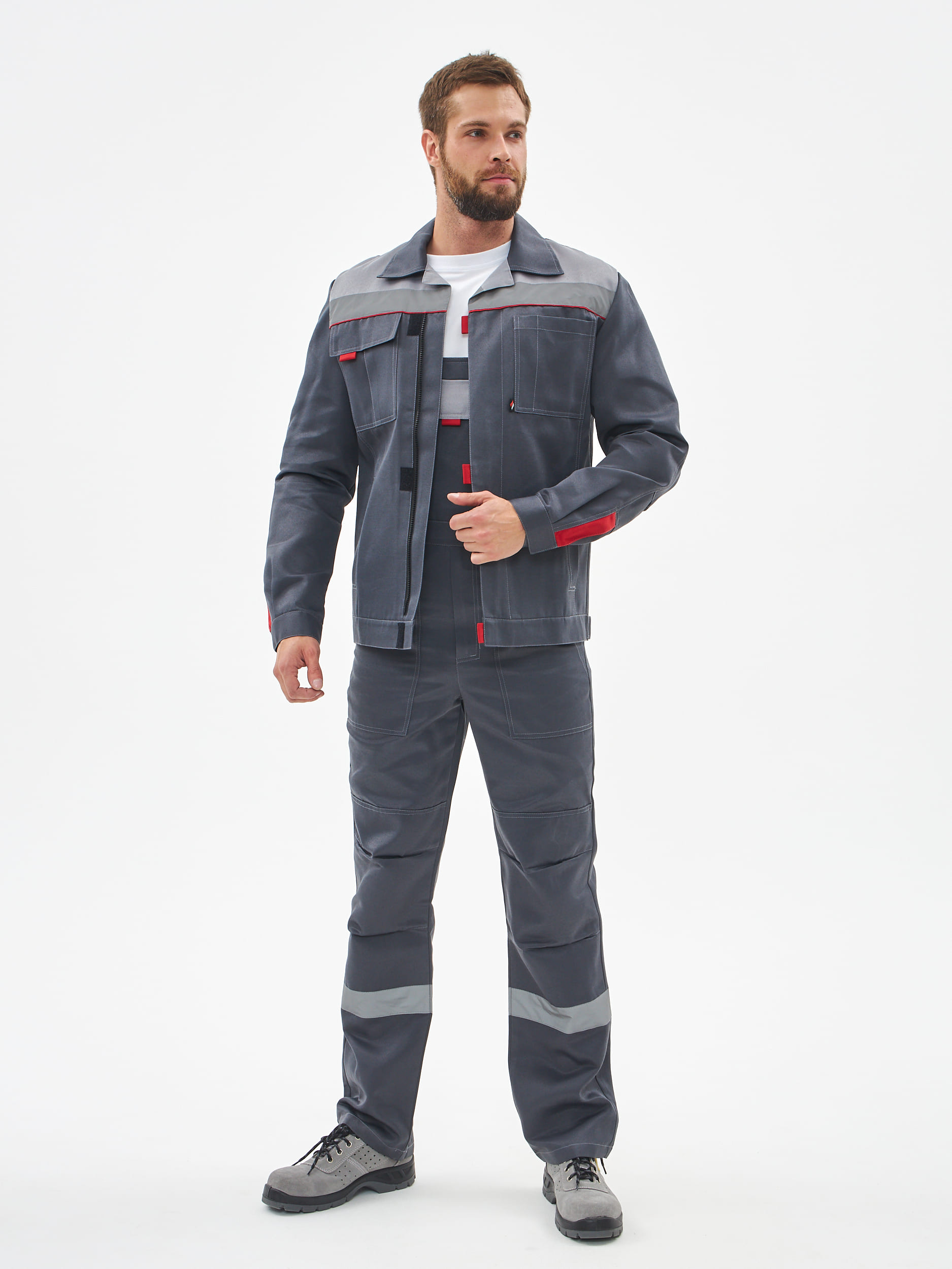 87488896 Костюм Флофт-2 СОП У. (тк.Смесовая,210) п/к, т.серый/серый/красный