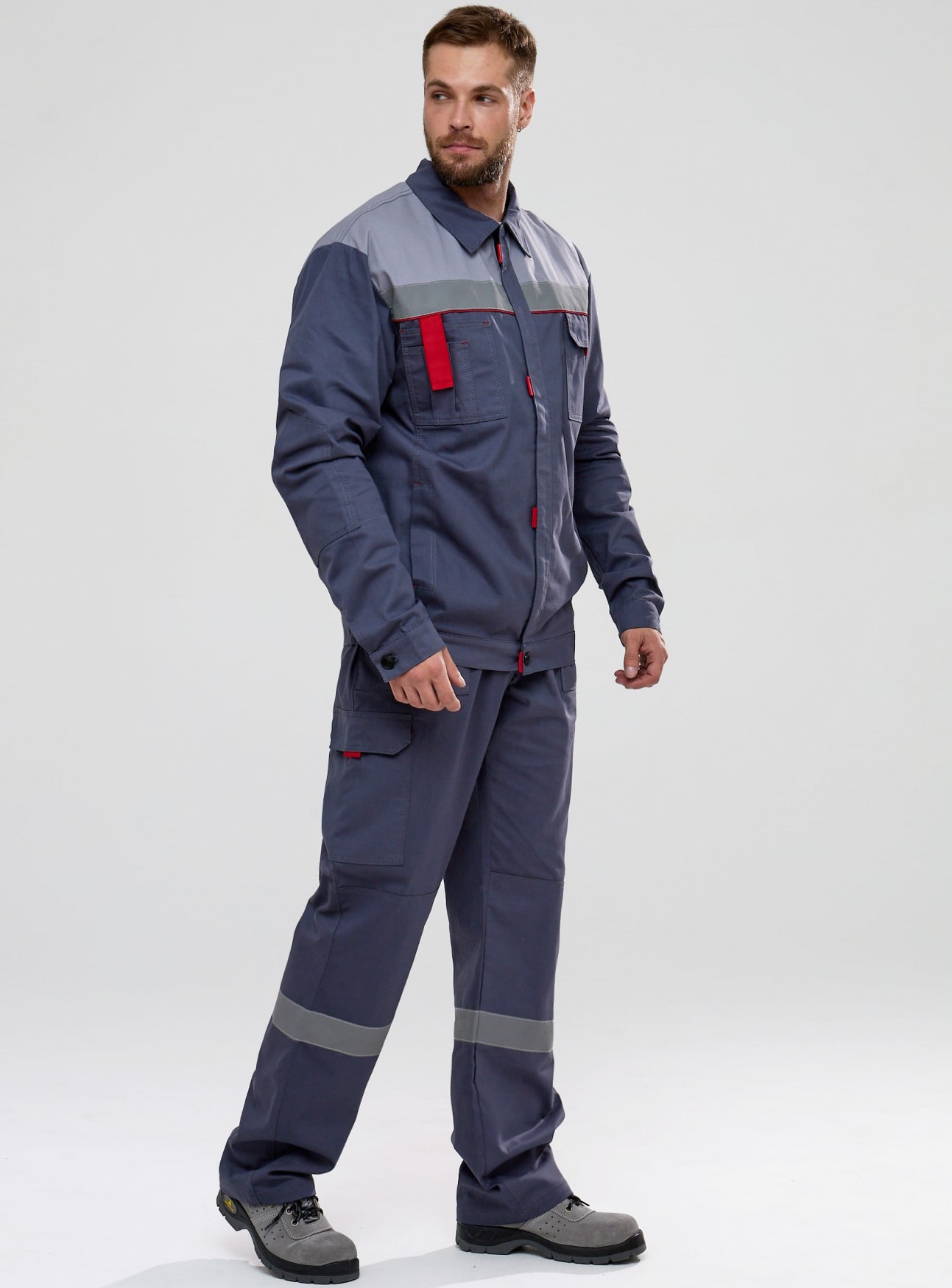 Костюм Флофт-2 СОП (тк.Саржа,250) п/к, т.серый/св.серый/красный