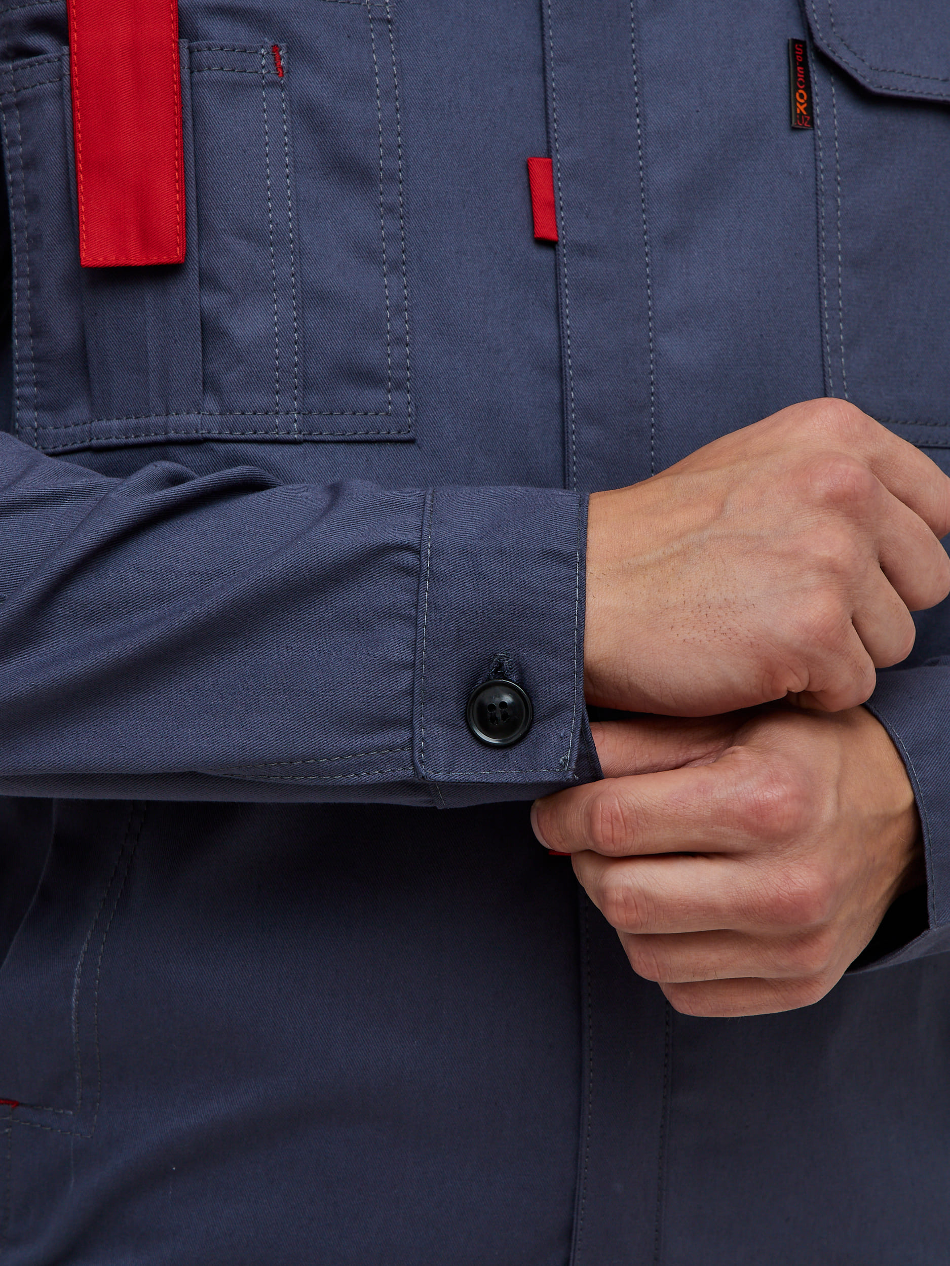 - Кокетки из отделочной ткани с контрастным кантом и светоотражающими полосами (СОП 50 мм)