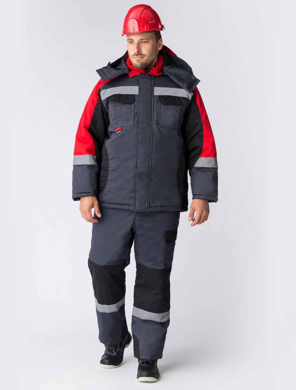 Костюм зимний Вектрон-2 СОП У. (тк.Смесовая,240) п/к, серый/черный/красный