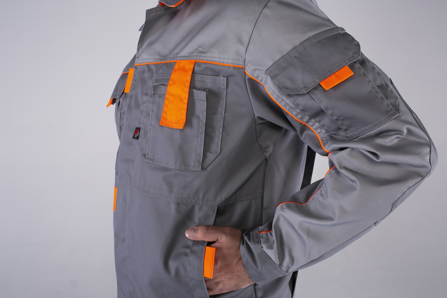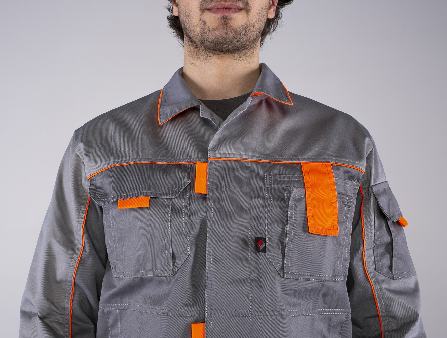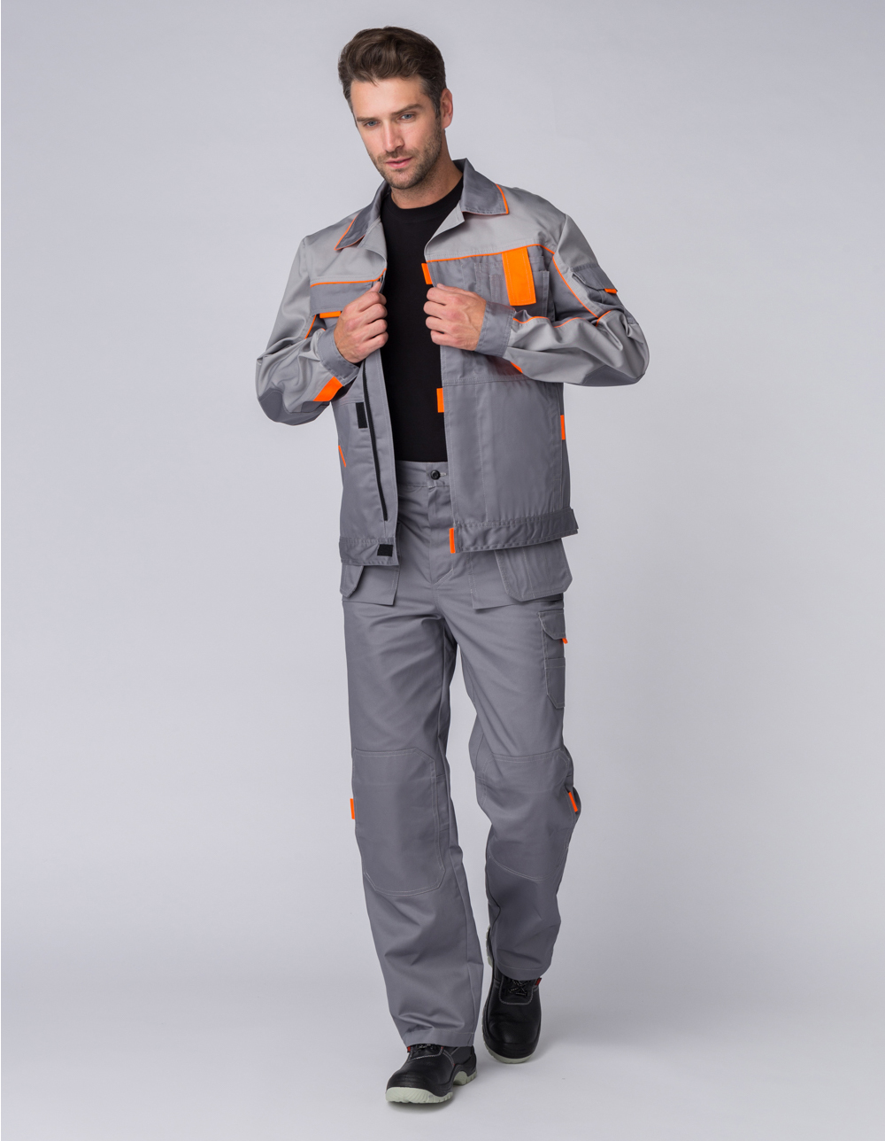 Костюм Драга-1 (тк.Балтекс,240) брюки, серый/св.серый/оранжевый