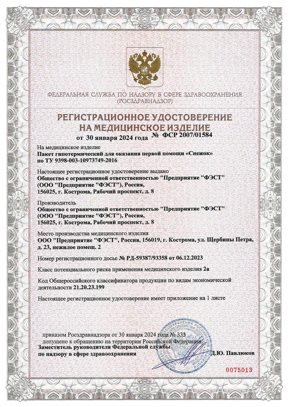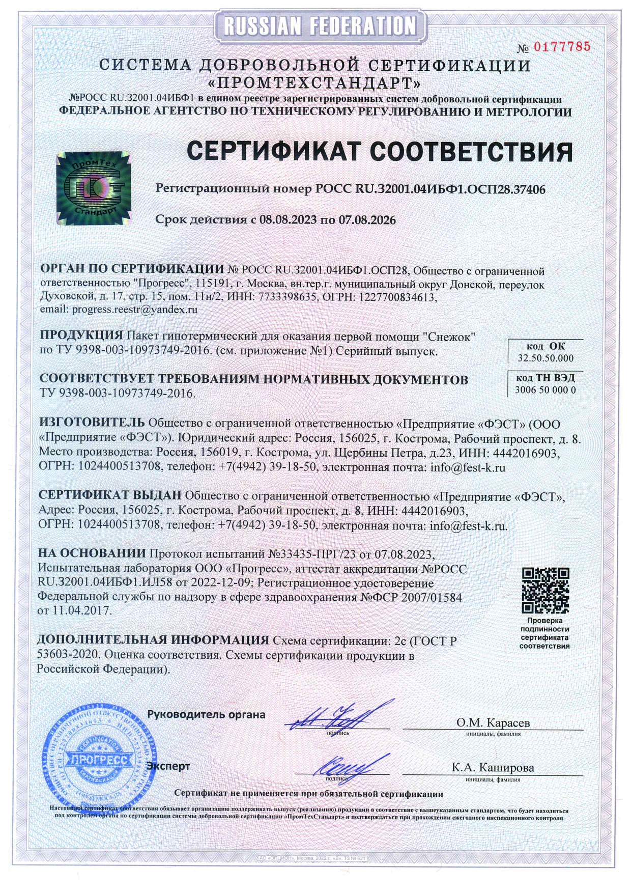 Пакет гипотермический Снежок №2 для оказания первой помощи, арт.1546
