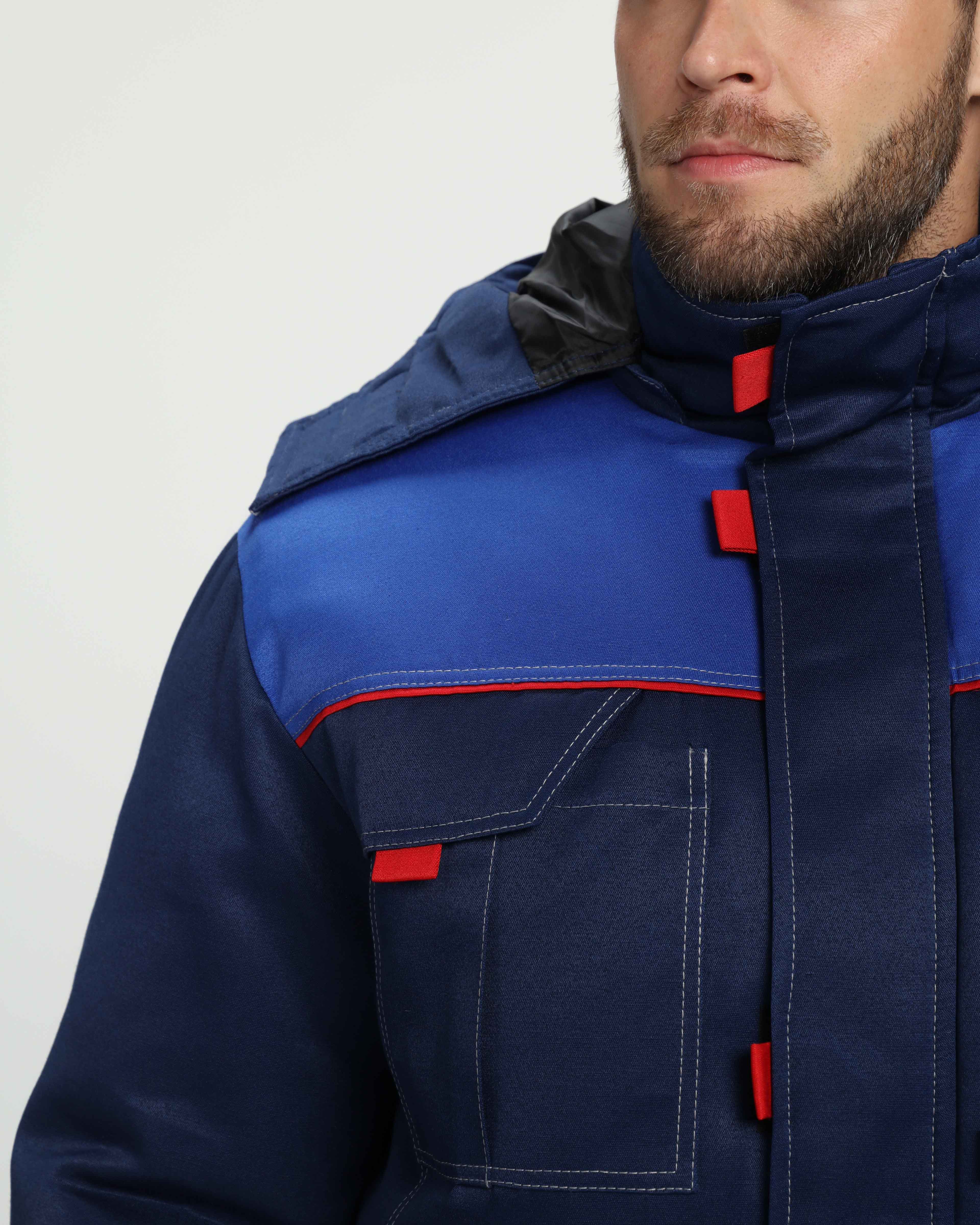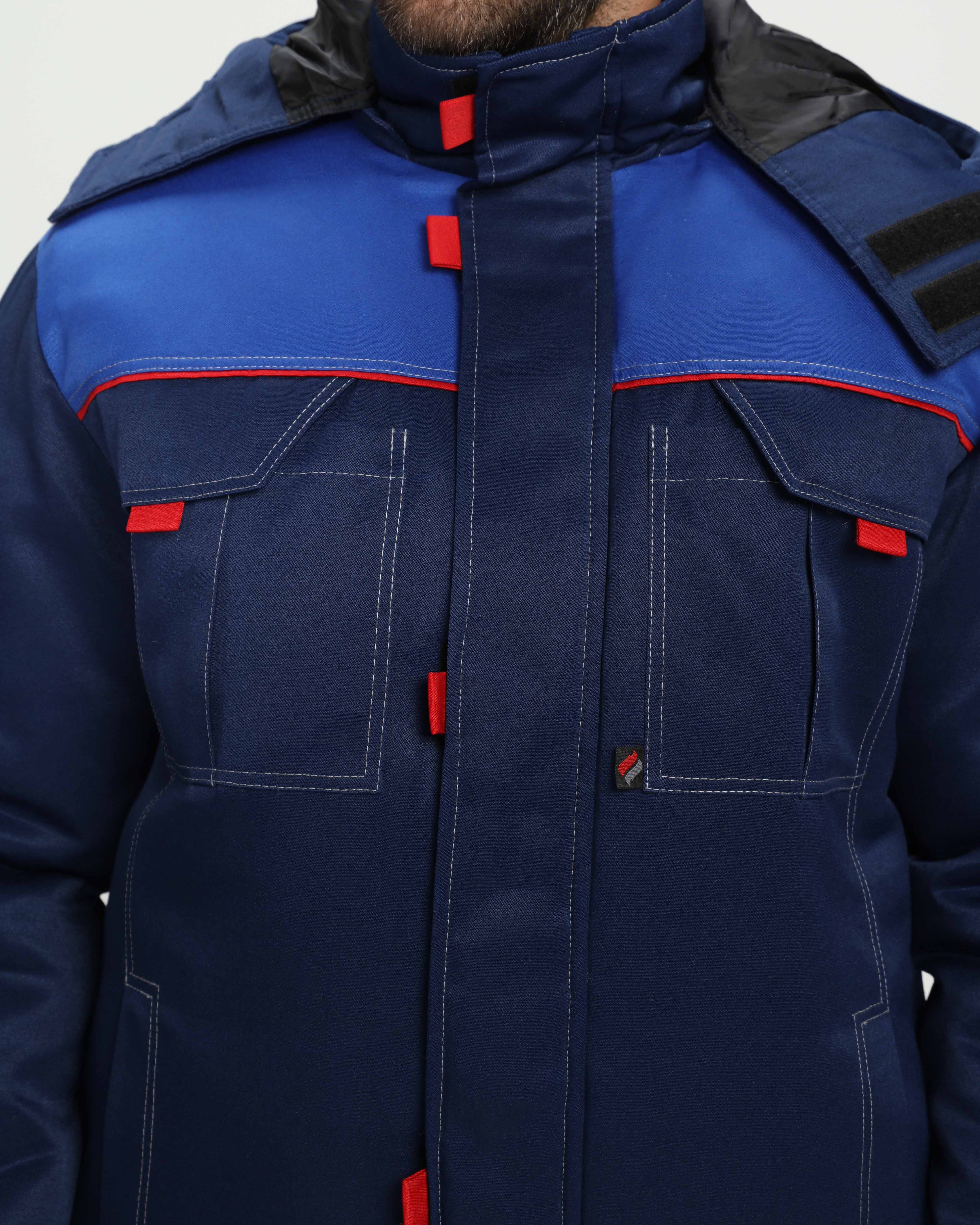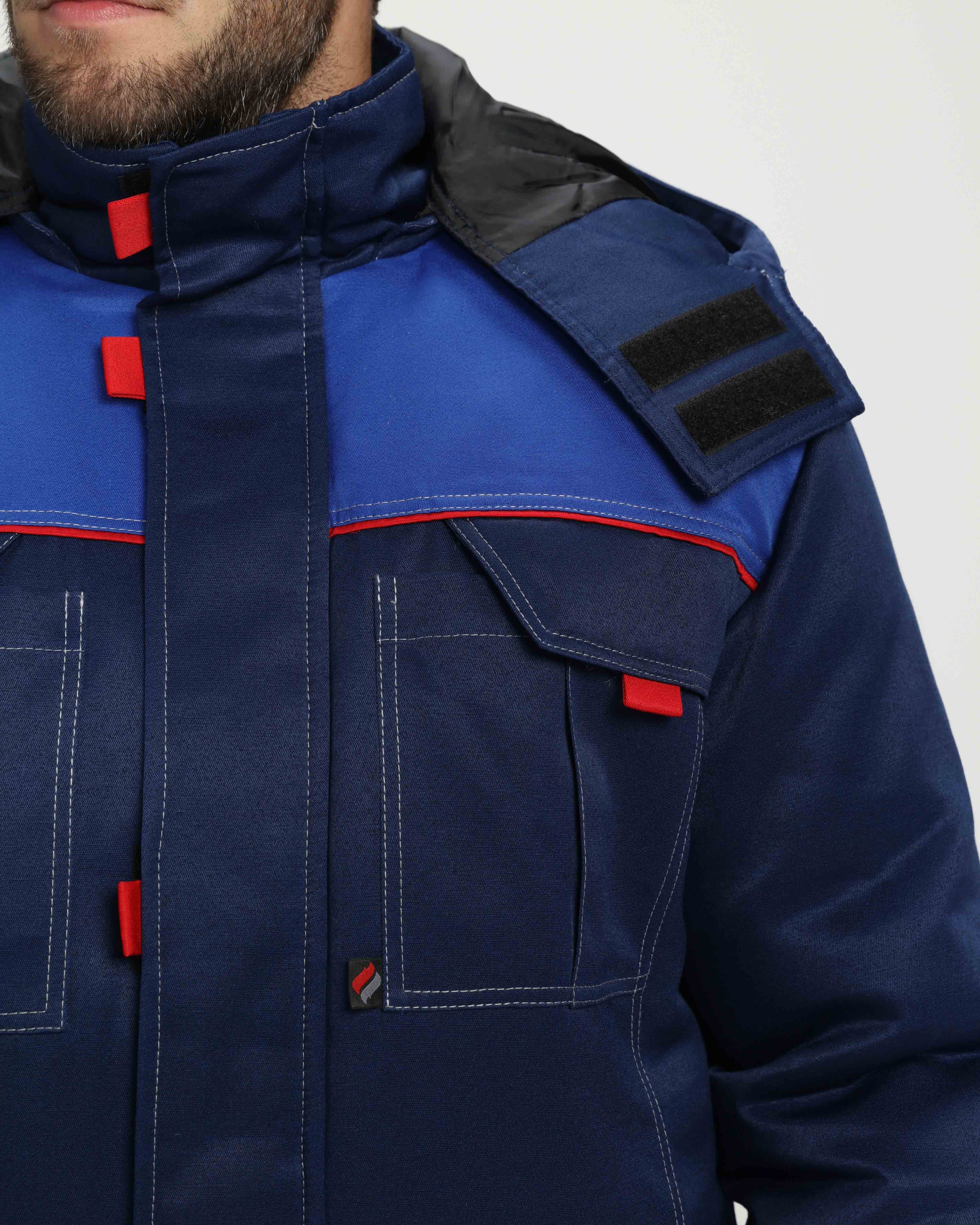 - Функциональная система карманов: верхние накладные со складкой и утепленными клапанами, внутренние в рельефных швах