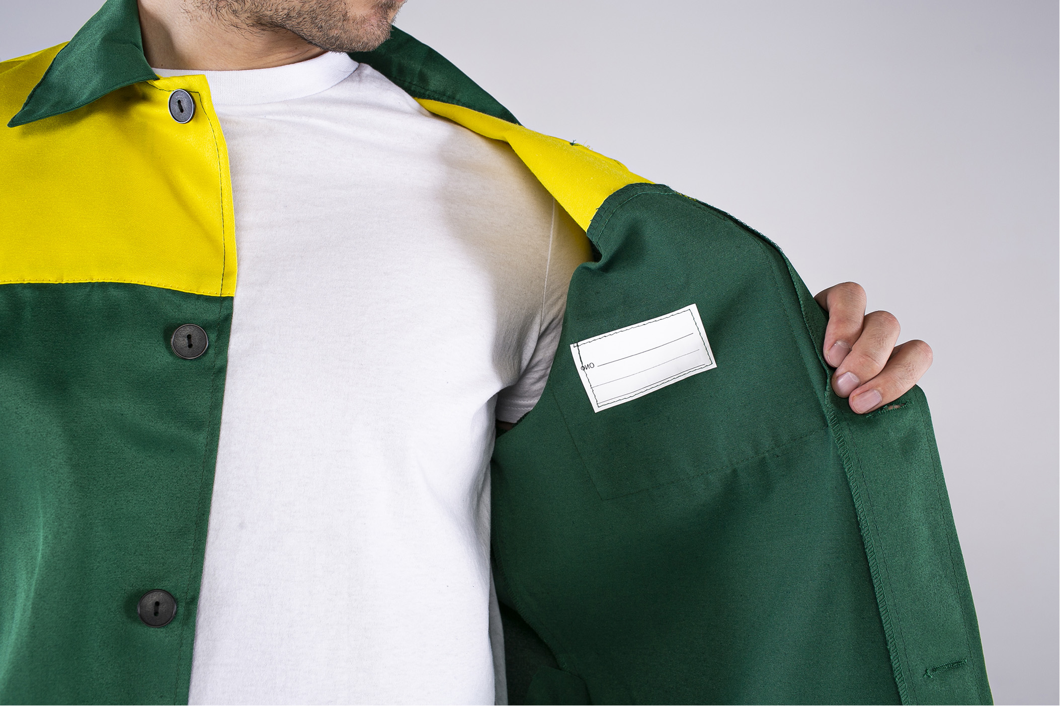 - Кокетки из отделочной ткани с нагрудным карманом и петлей для бейджа