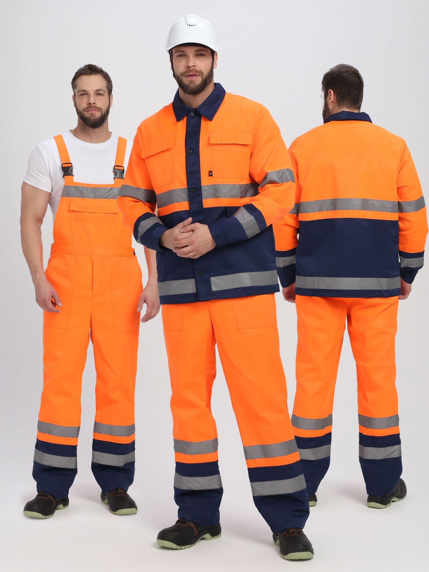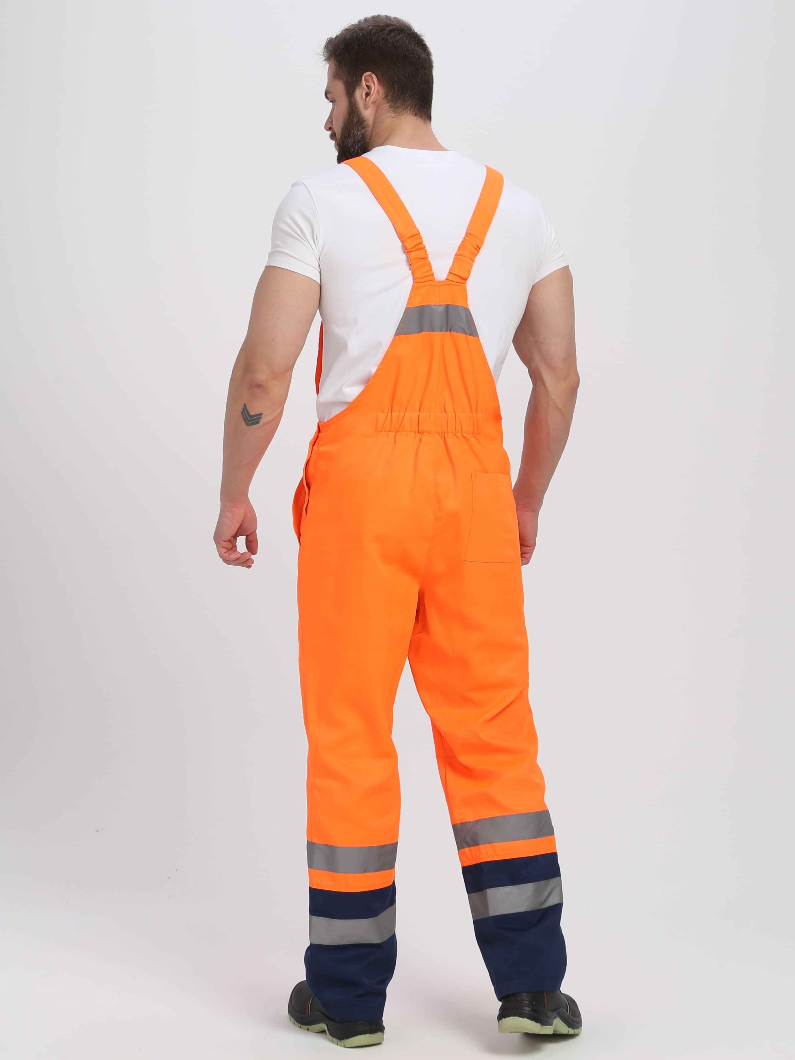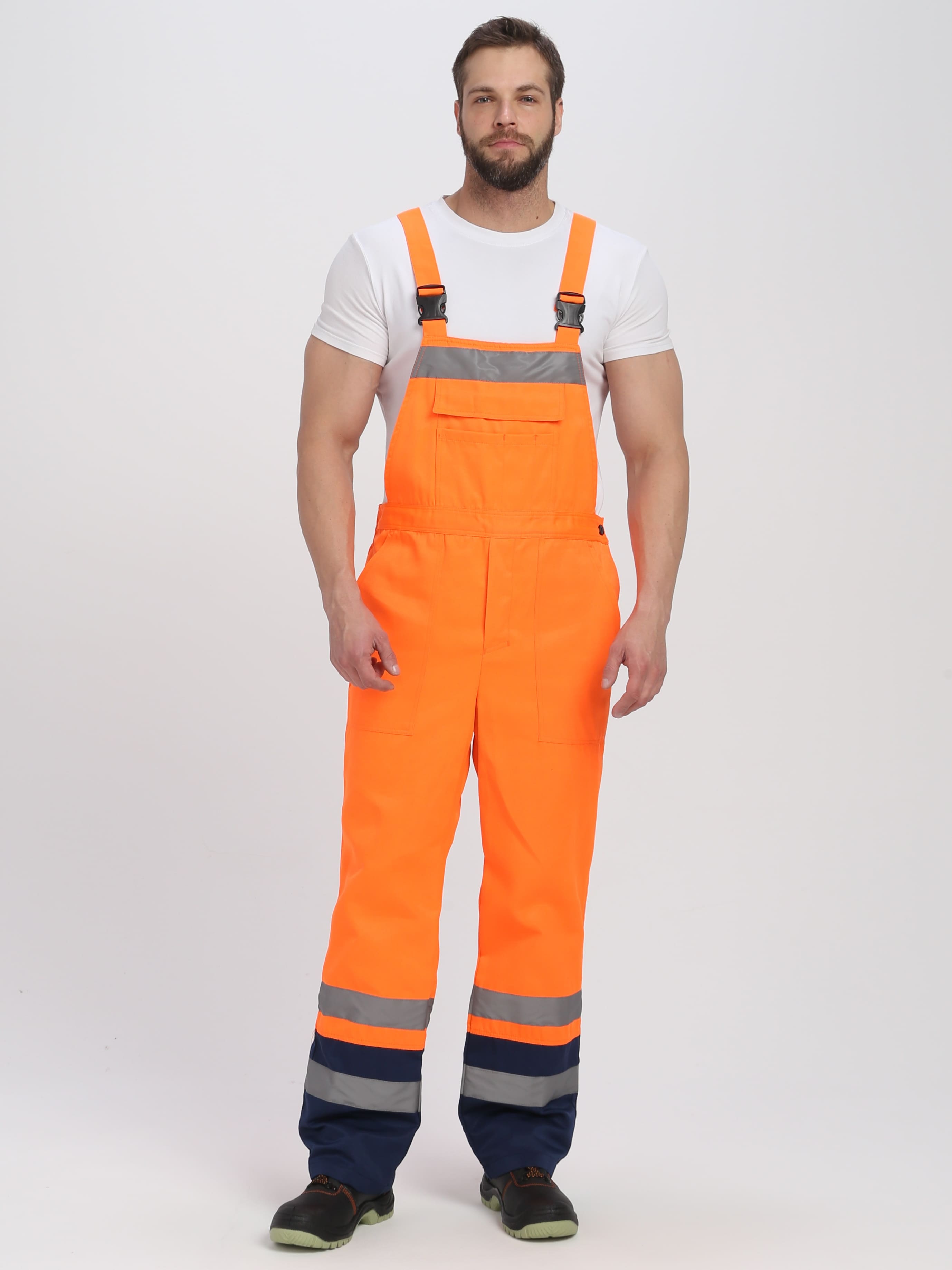 2. Полукомбинезон прямого силуэта. Если на улице высокая температура, выполнять работы можно только в полукомбинезоне, без куртки: он оснащен светоотражающими полосами на брюках, которые обеспечивает оптимальную безопасность.