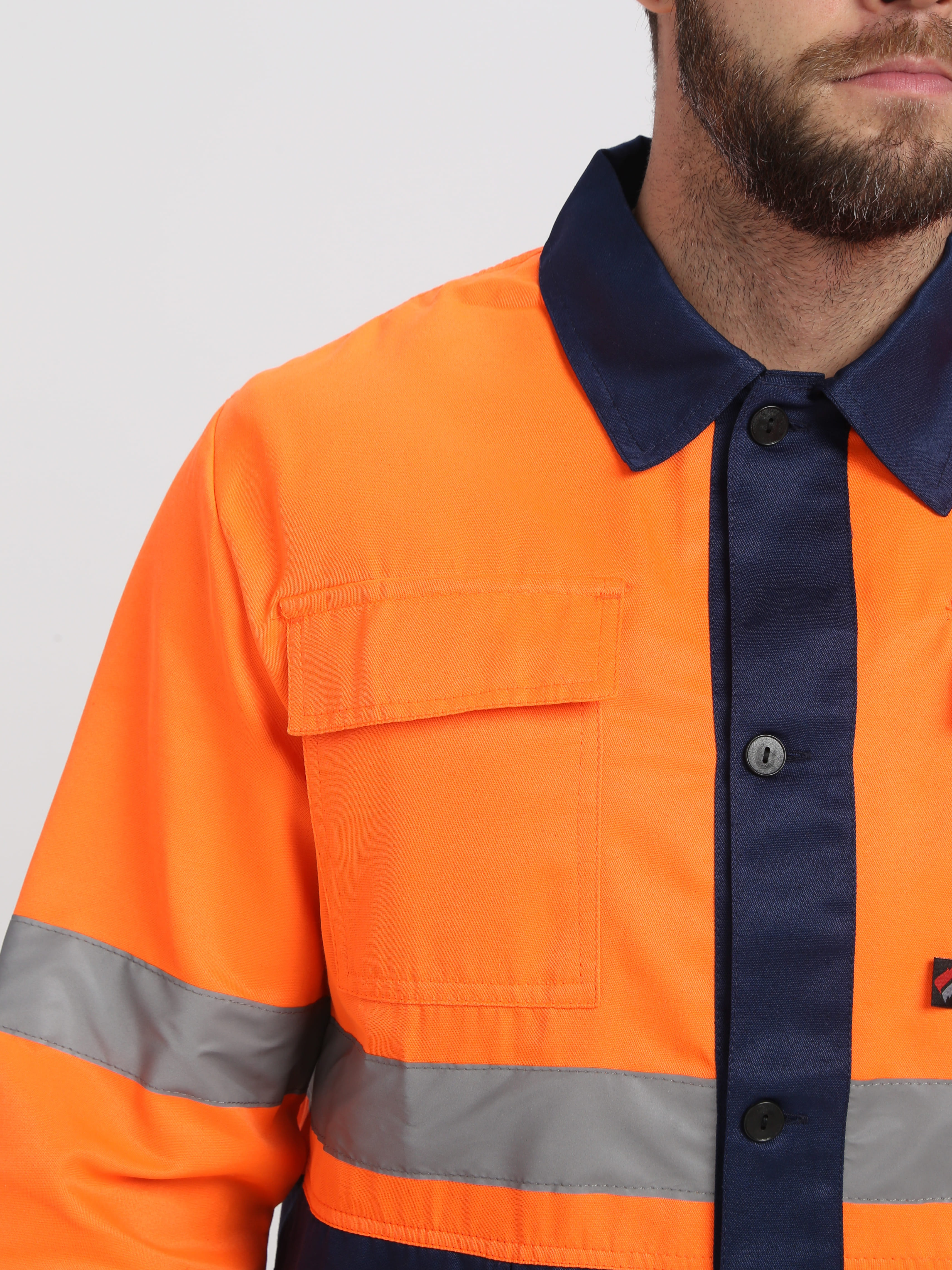 Летний оранжевый костюм дорожника выполнен по ГОСТ — он удобный, безопасный и позволяет поддерживать оптимальный уровень комфорта как в дождливую, так и в солнечную погоду. Материал представляет собой комбинацию хлопка (35%) и полиэфира (65%). Хлопок обеспечивает естественную циркуляцию воздуха и не создает «парникового эффекта» в жаркое время.