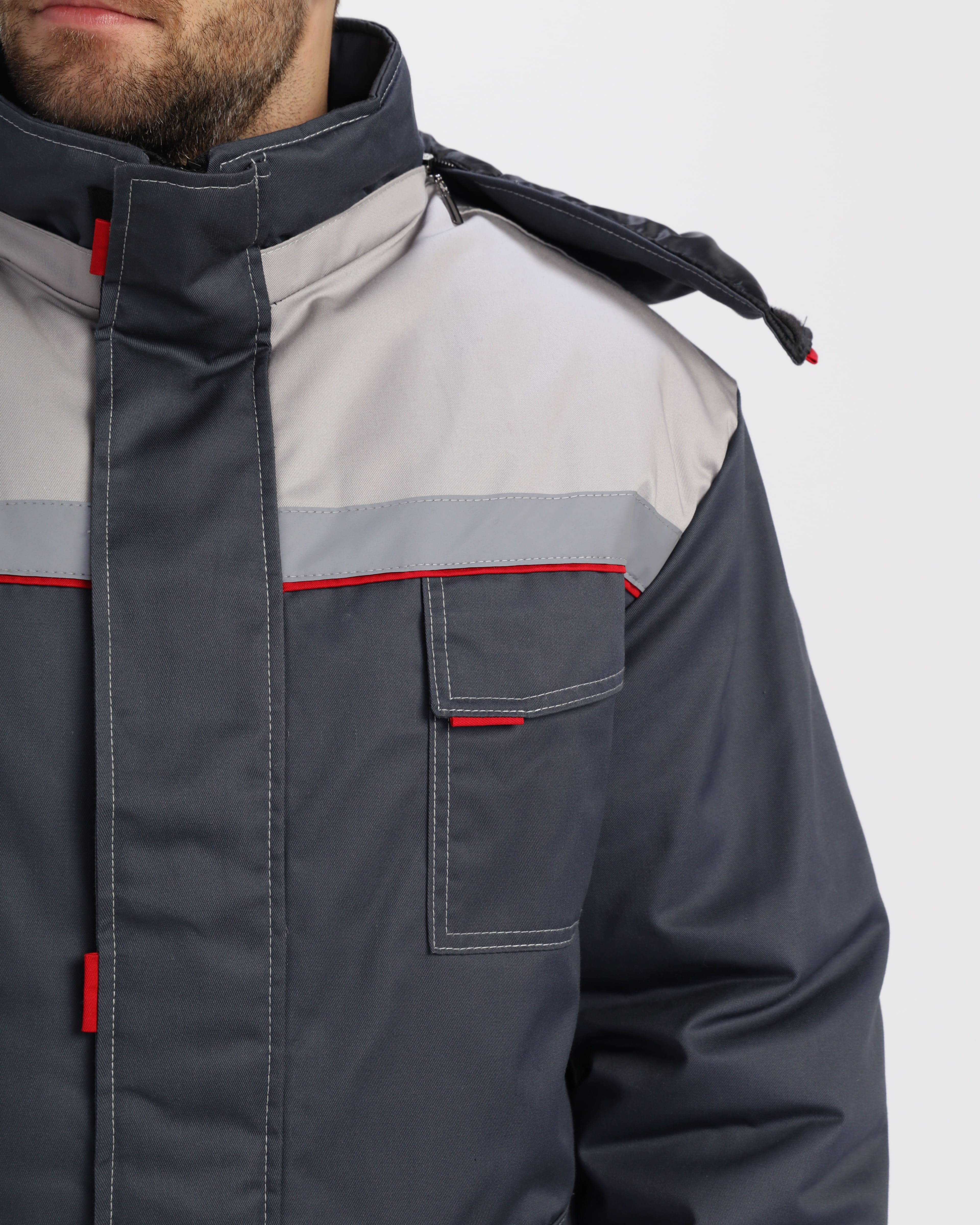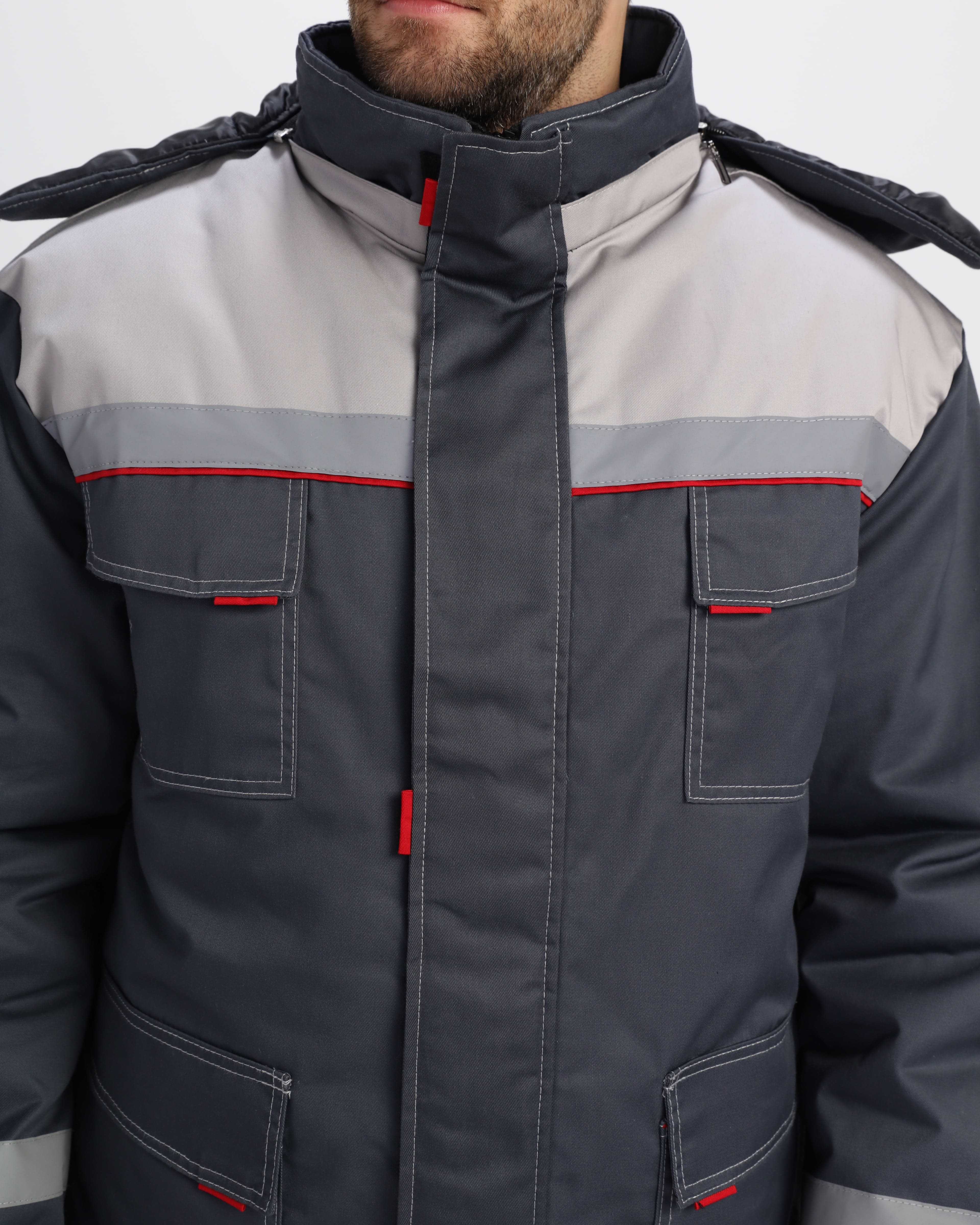 - центральная застежка на молнию с клапаном ветрозащитным на ленте контакт