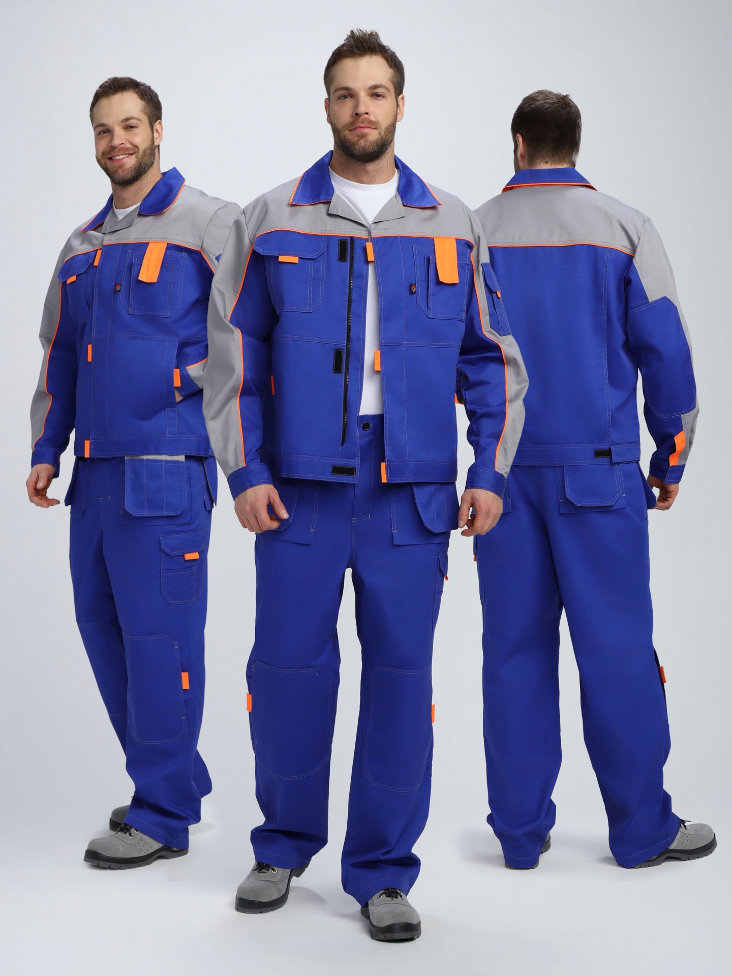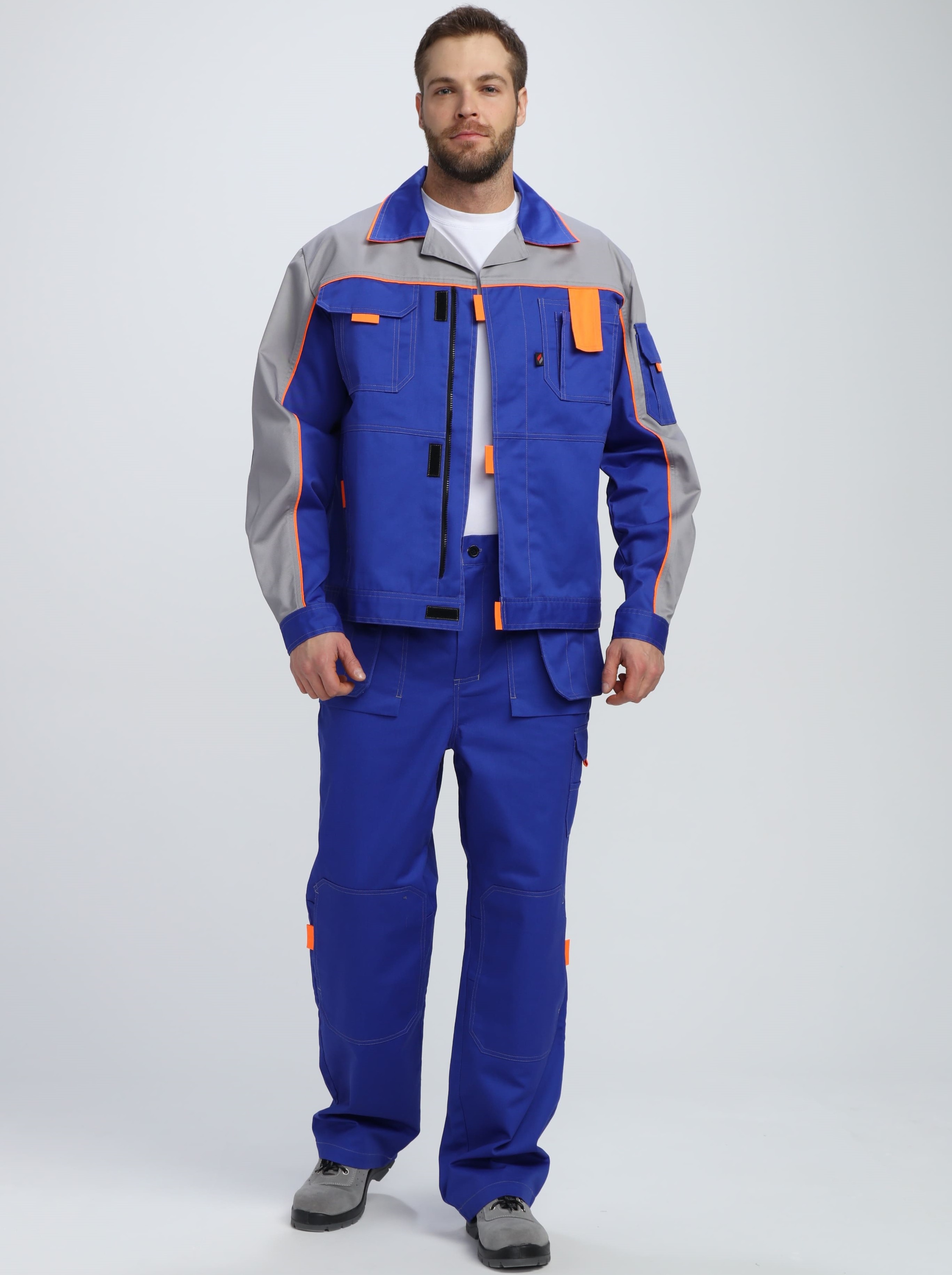 Костюм Драга-1 (тк.Смесовая МВО,240) брюки, васильковый/св.серый/оранжевый