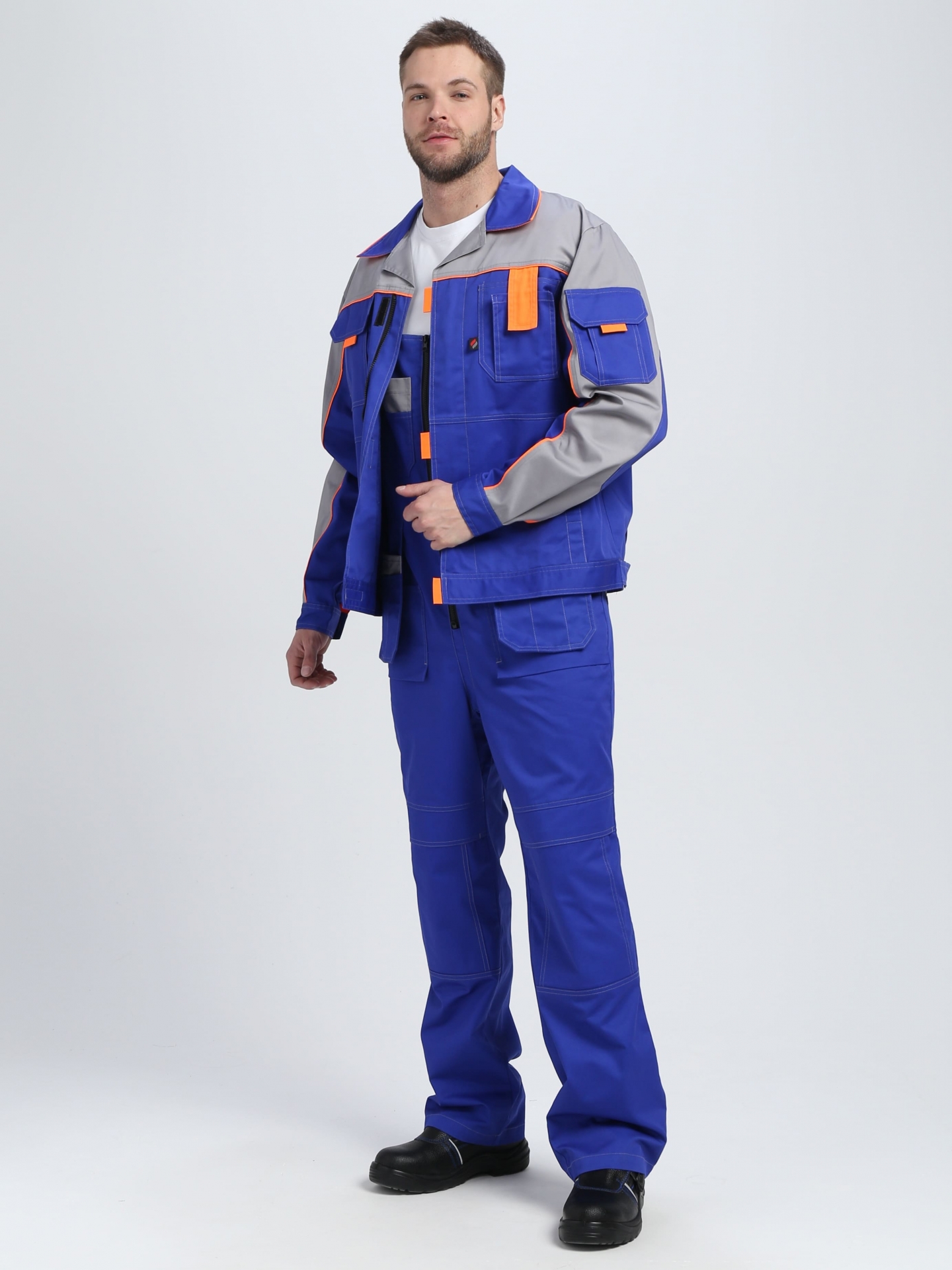 Костюм Драга-2 (тк.Смесовая МВО,240) п/к, васильковый/св.серый/оранжевый
