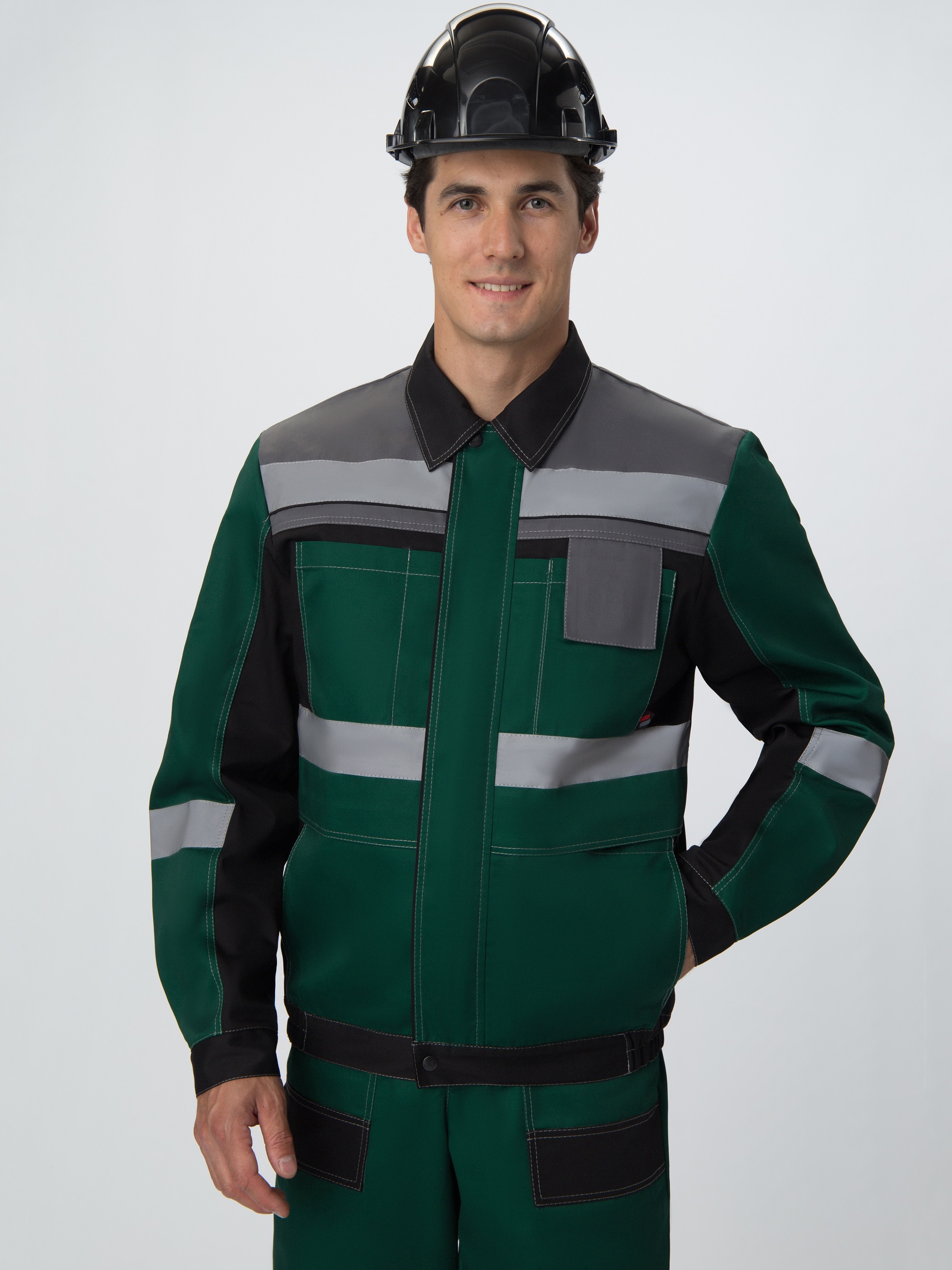 - по кокеткам, полочкам, спинке, рукавам и брючинам расположены световозвращающие полосы, что позволяет использовать костюм в условиях плохой видимости